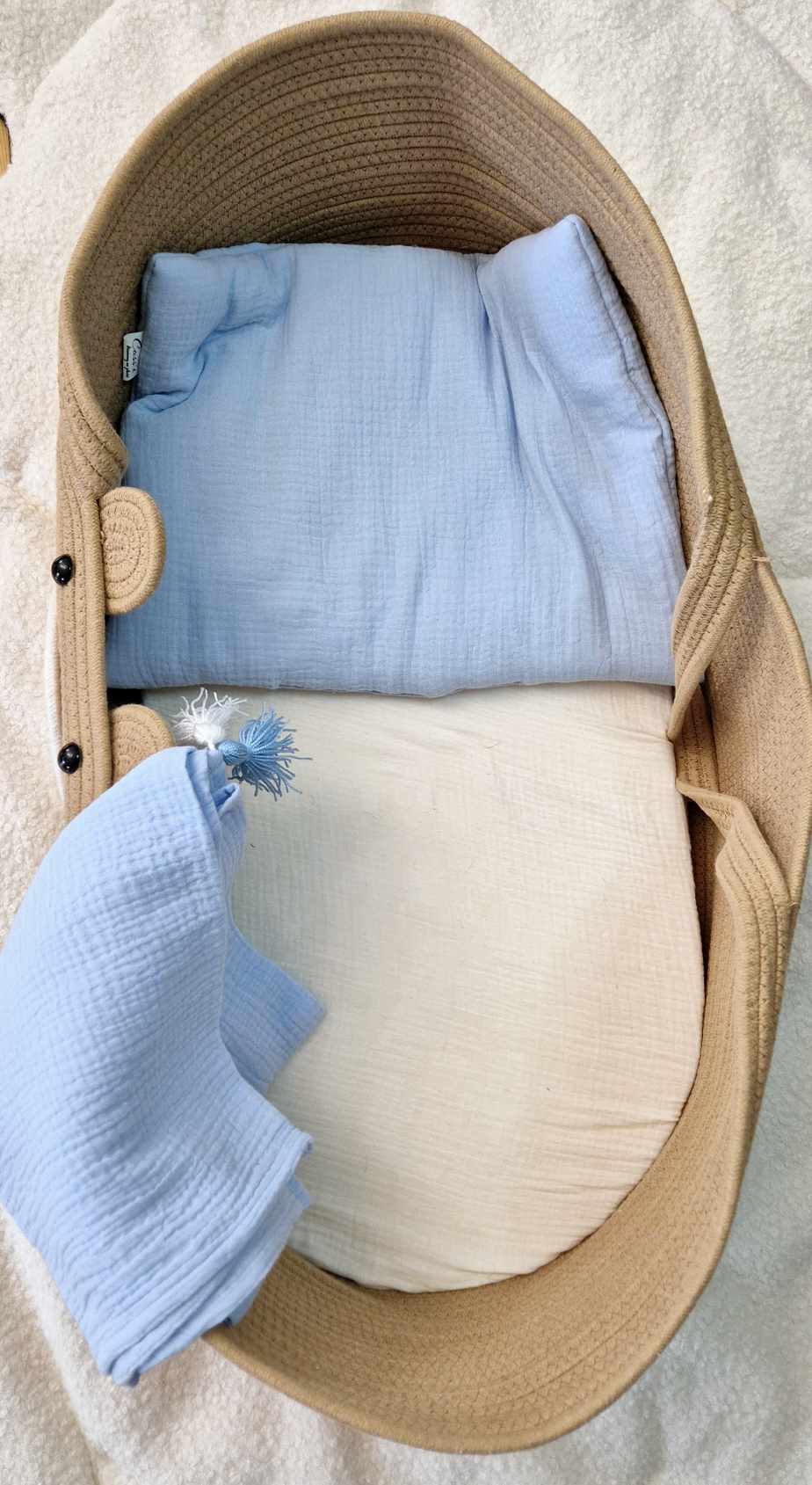 Mięciutki, otulacz muślinowy wykonany jest z najwyższej jakości bawełny muślinowej, która charakteryzuje się dużą przewiewnością i delikatnością.