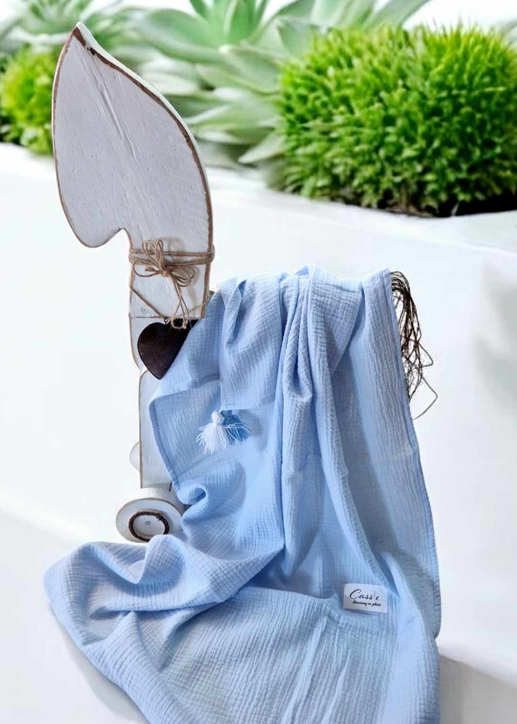 Śliczny muślinowy ,Firmowy otulacz ,kocyk z chwostami -materiał klasy Premium .(Nowy z metką)