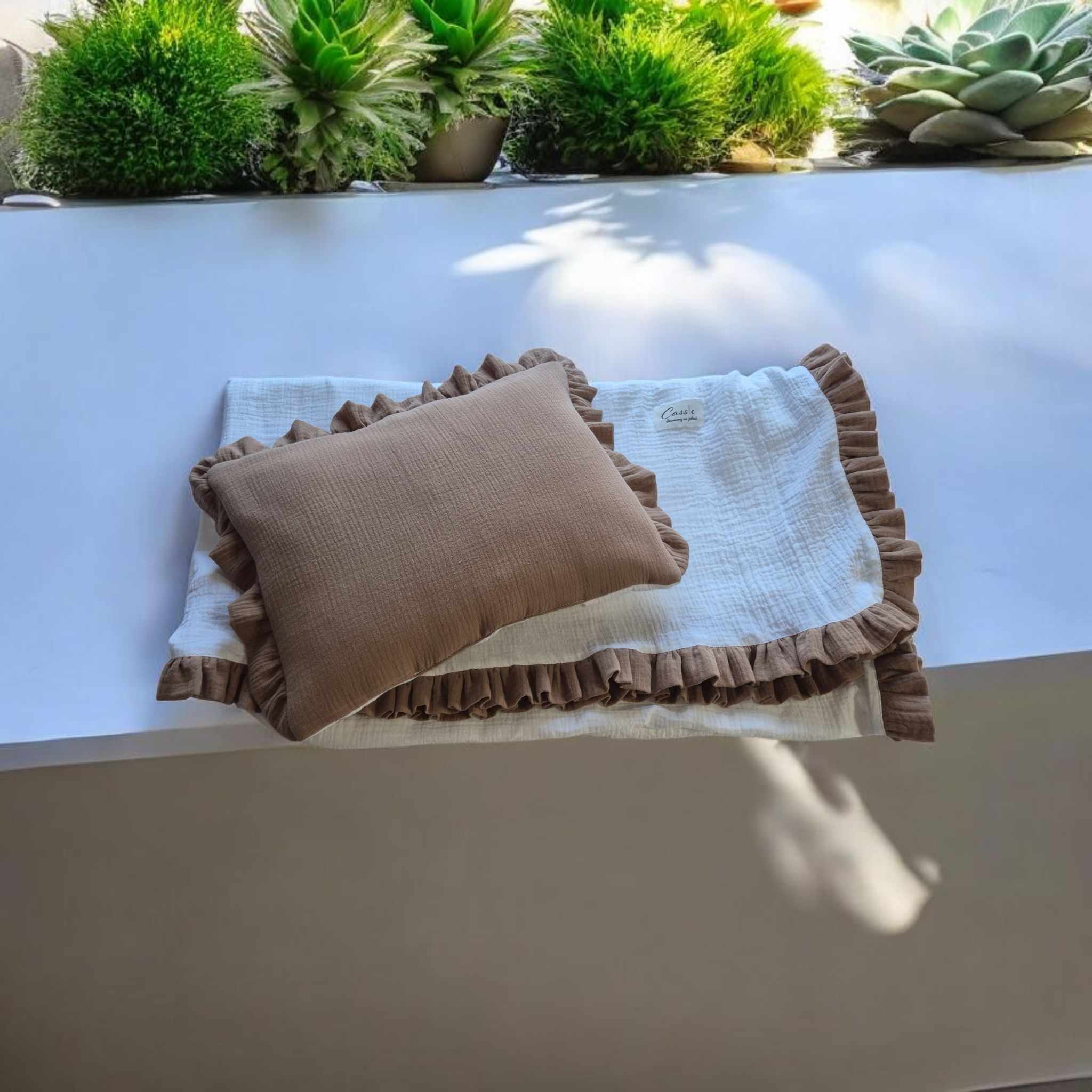 Kocyk muślinowy z podusią lub bez ( Zdjęcia przedstawiają najczęściej wybierany rozmiar M 75×100 )