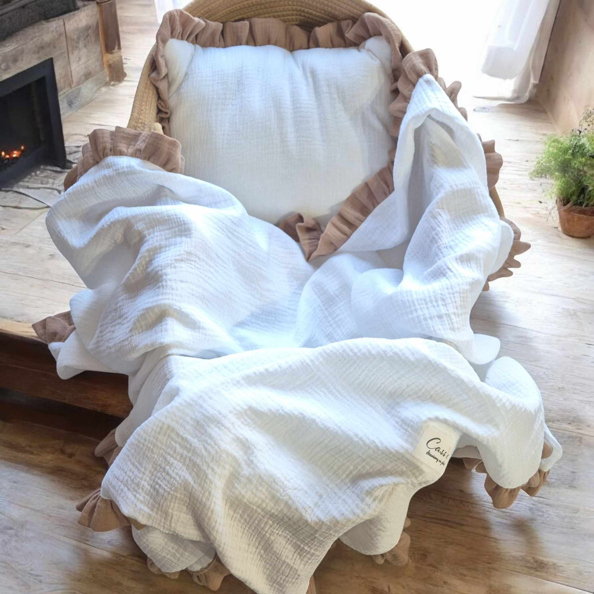Kocyk/otulacz z podusią lub bez-wzór Biało-beżowy ,Falbany