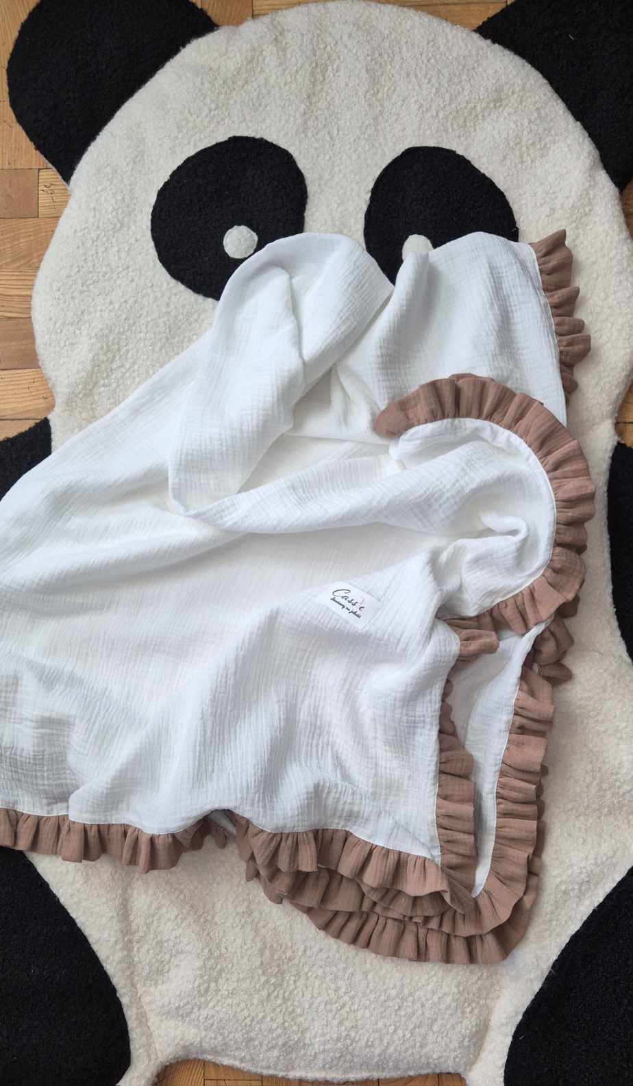 Śliczny muślinowy ,Firmowy otulacz ,kocyk z chwostami -materiał klasy Premium .(Nowy z metką)