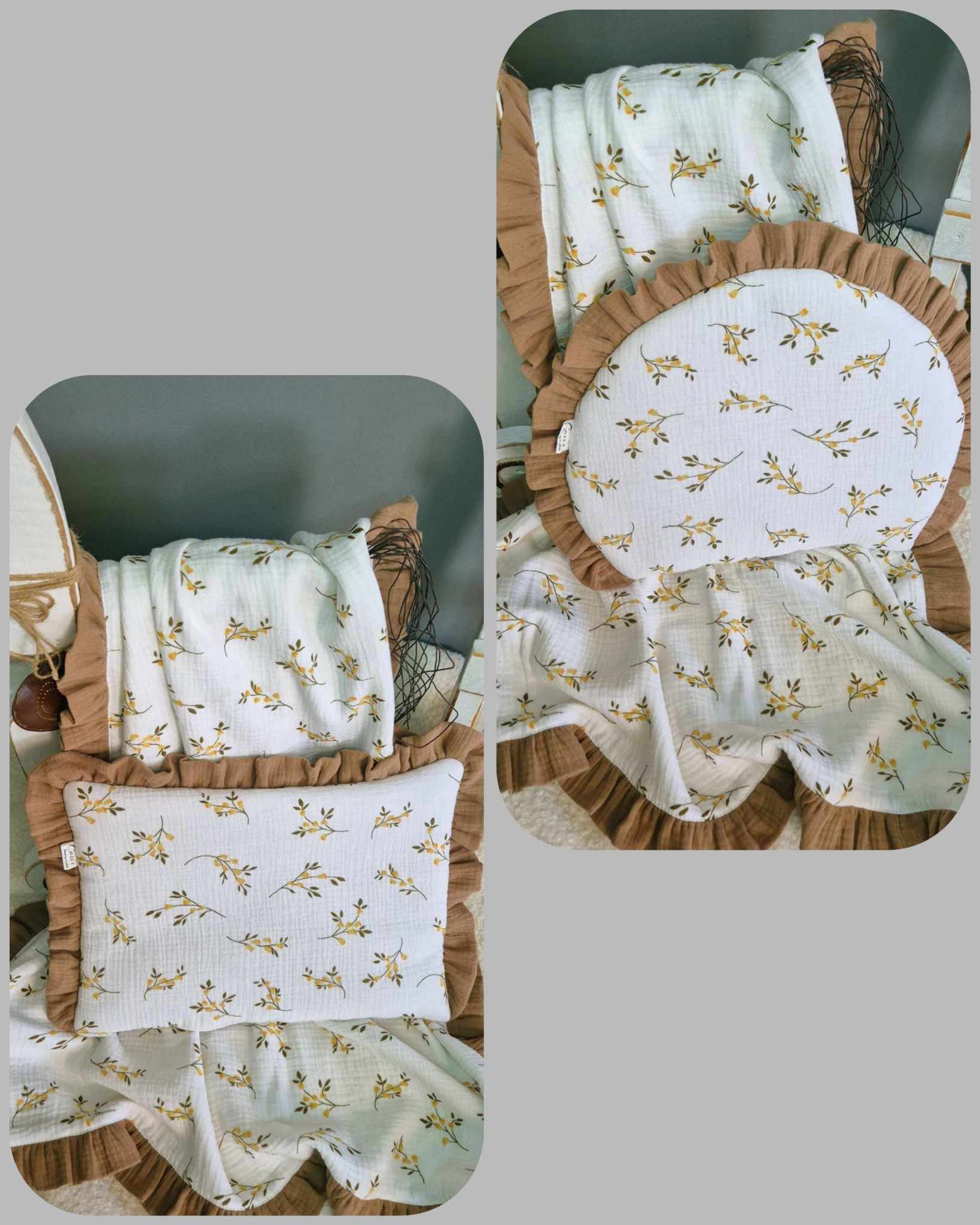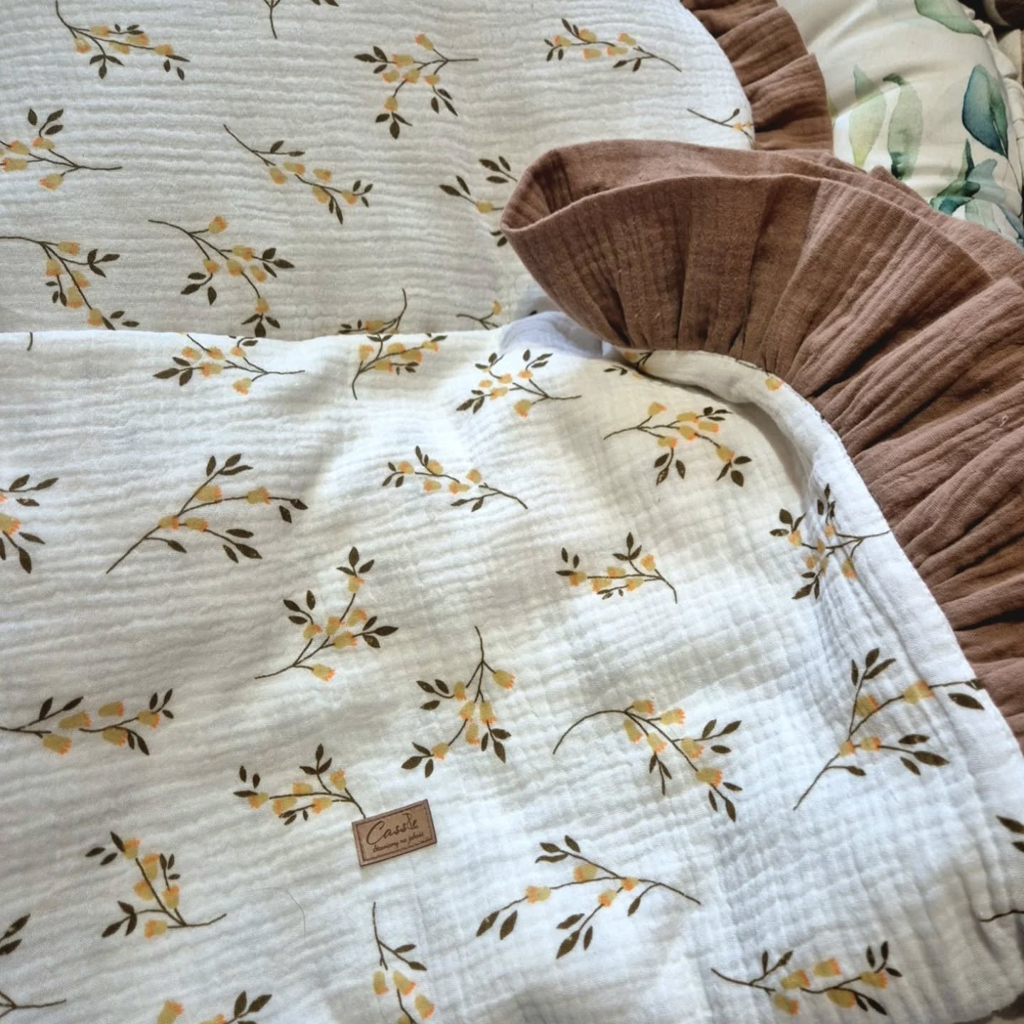 Kocyk/otulacz z podusią lub bez-wzór Gałązka z falbanami