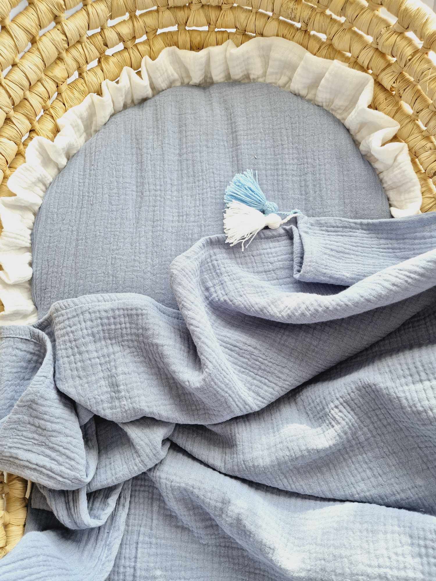 Muślin bawełniany to najdelikatniejsza tkanina ,wykazuje właściwości antyalergiczne, jest chłonny ,doskonale przepuszcza powietrze .W ciepłe dni zapewni efekt delikatnej ochłody . Nie podrażnia skóry, nie uczula .