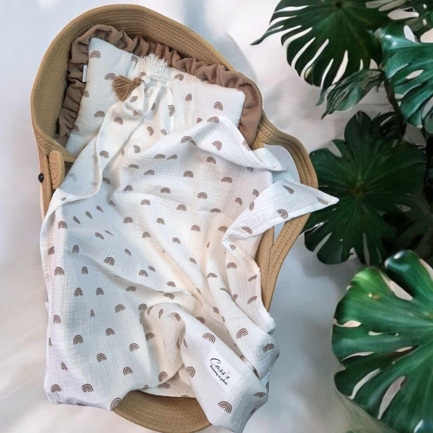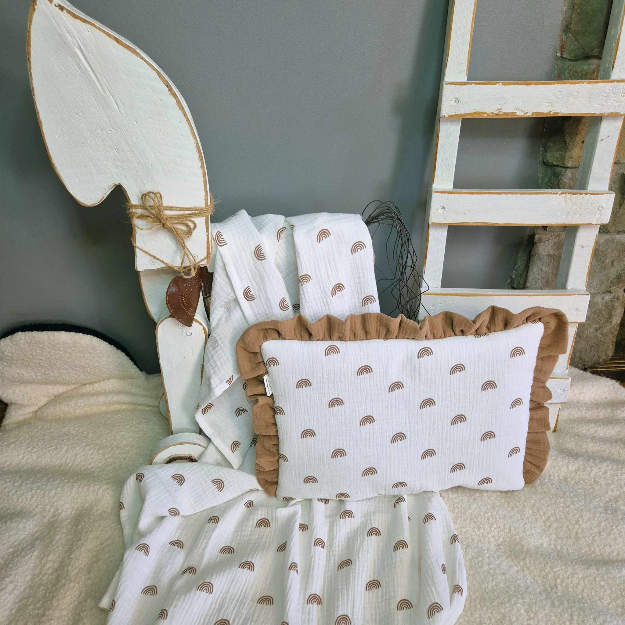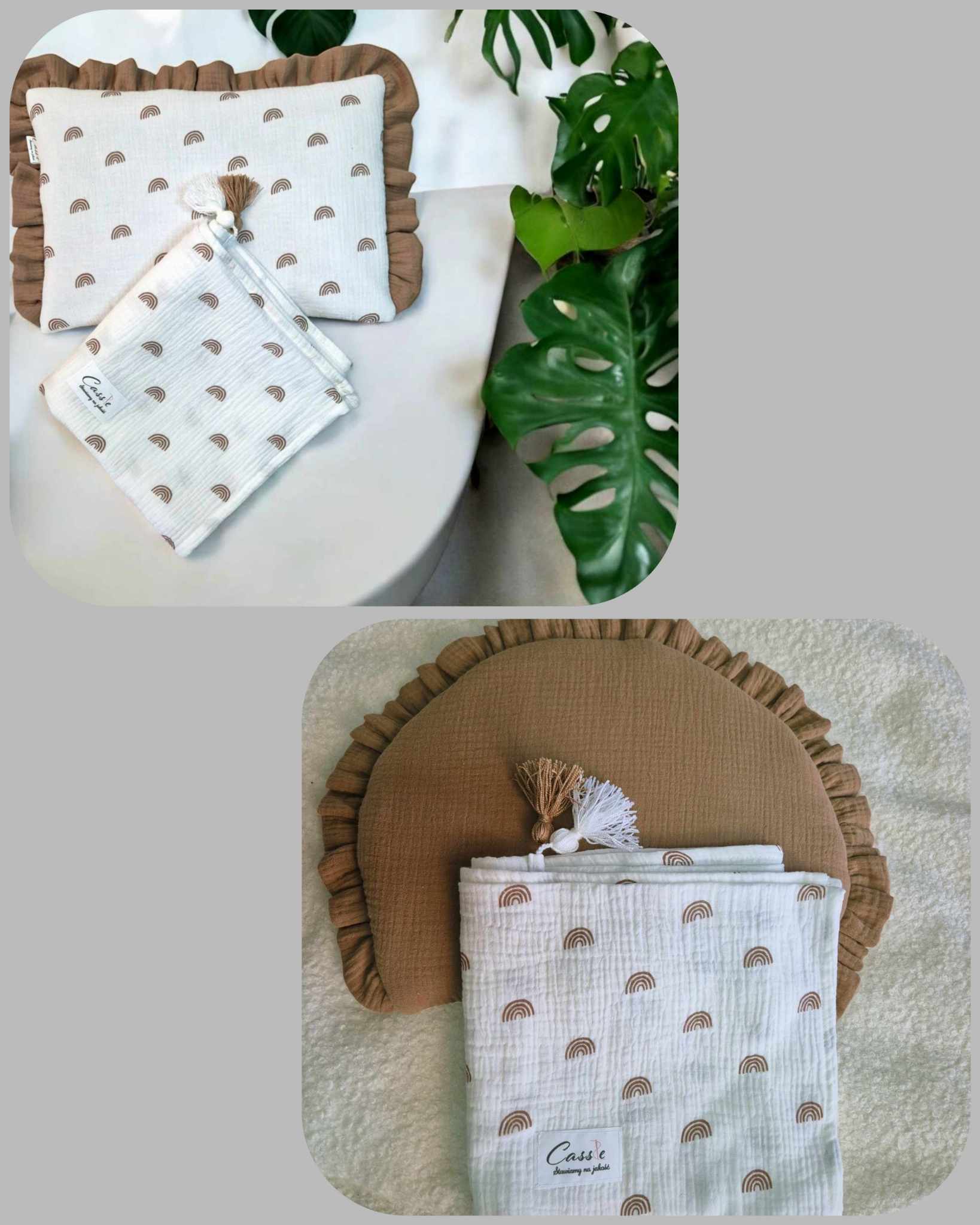 Kocyk muślinowy z podusią lub bez ( Zdjęcia przedstawiają najczęściej wybierany rozmiar M 75×100 )