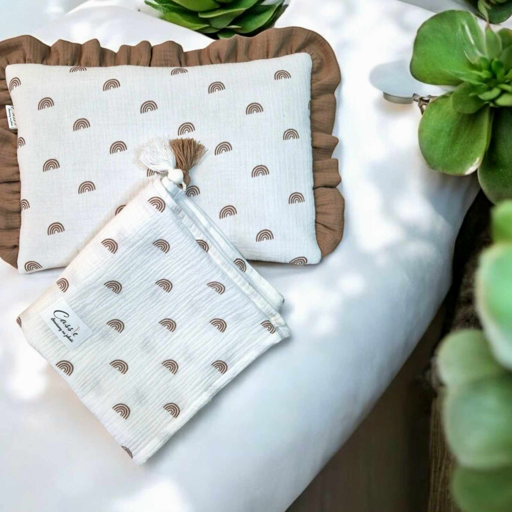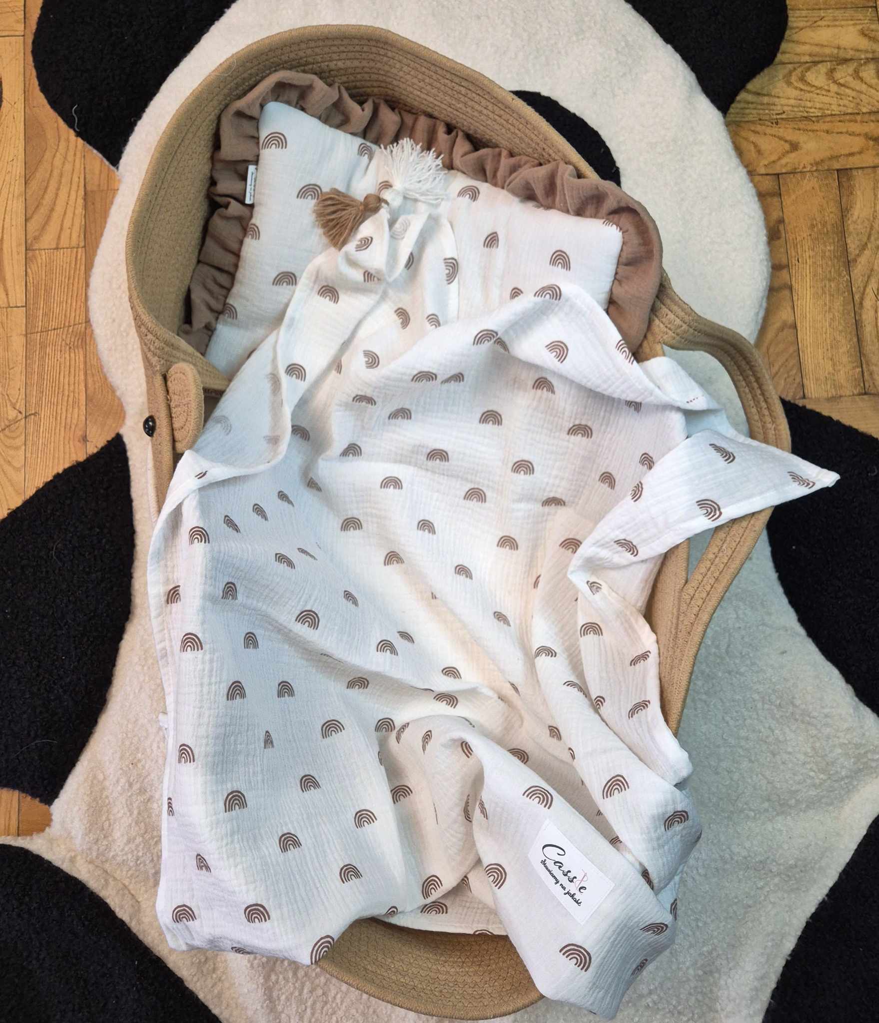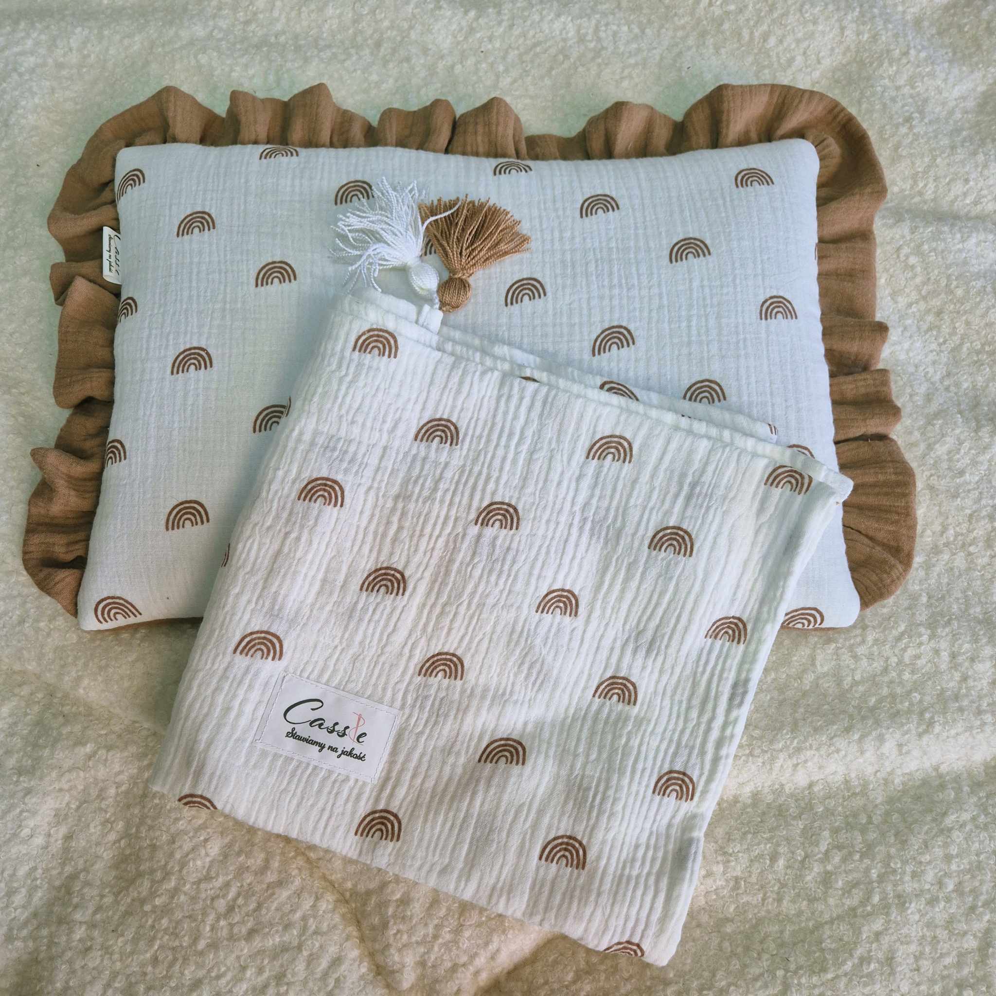 Kocyk muślinowy z podusią lub bez ( Zdjęcia przedstawiają najczęściej wybierany rozmiar M 75×100 )