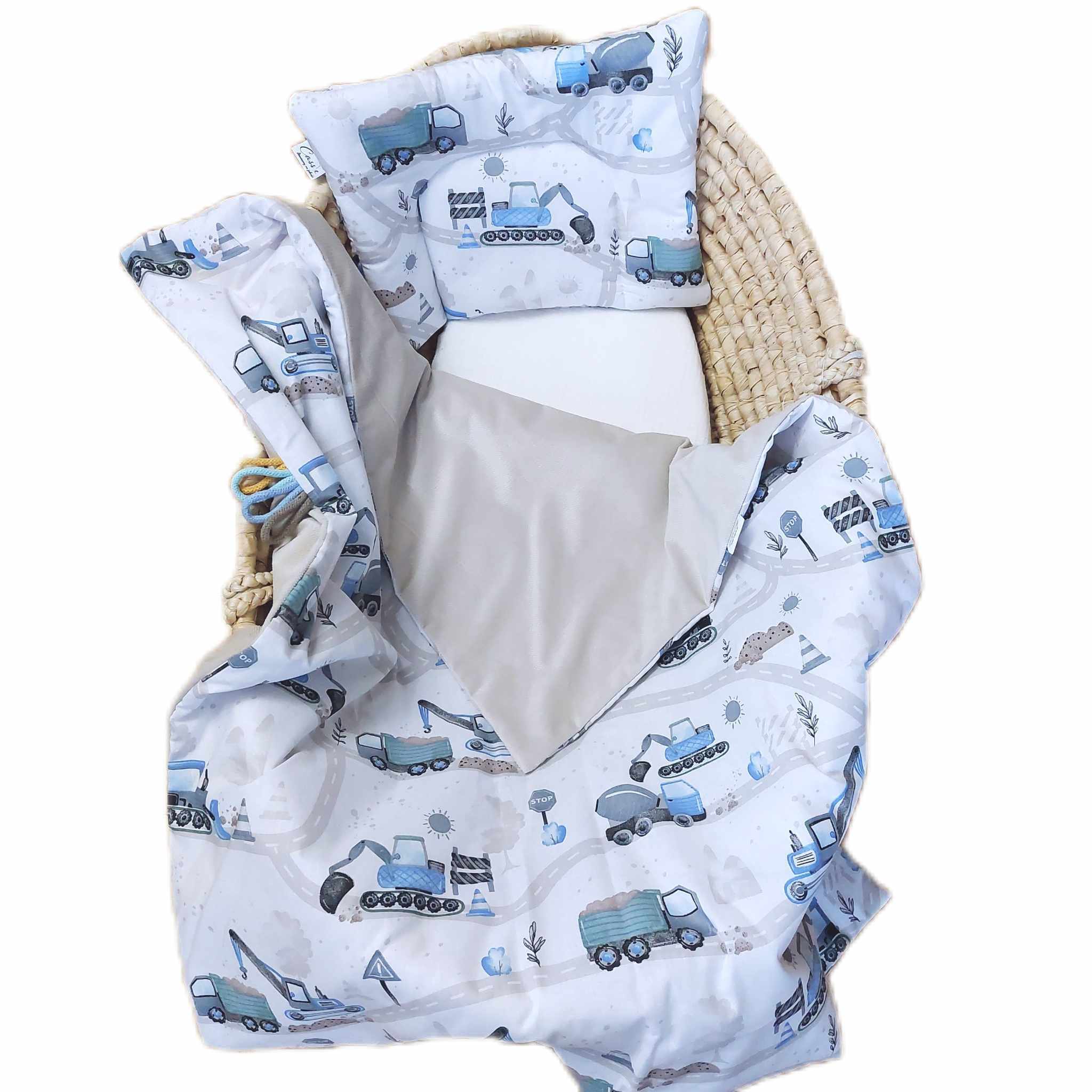 Kołderka uszyta z bawełny 100%.(Bawełna ze wzorem +muślin ) Wypełnienie kołderki stanowi włóknina silikonowa o właściwościach antyalergicznych, zapewniająca odpowiednią termoregulację co zagwarantuje spokojny sen maleństwa. Dzięki zszyciu wypełnienia z kołderką, wsad nie przemieści się podczas użytkowani i prania.