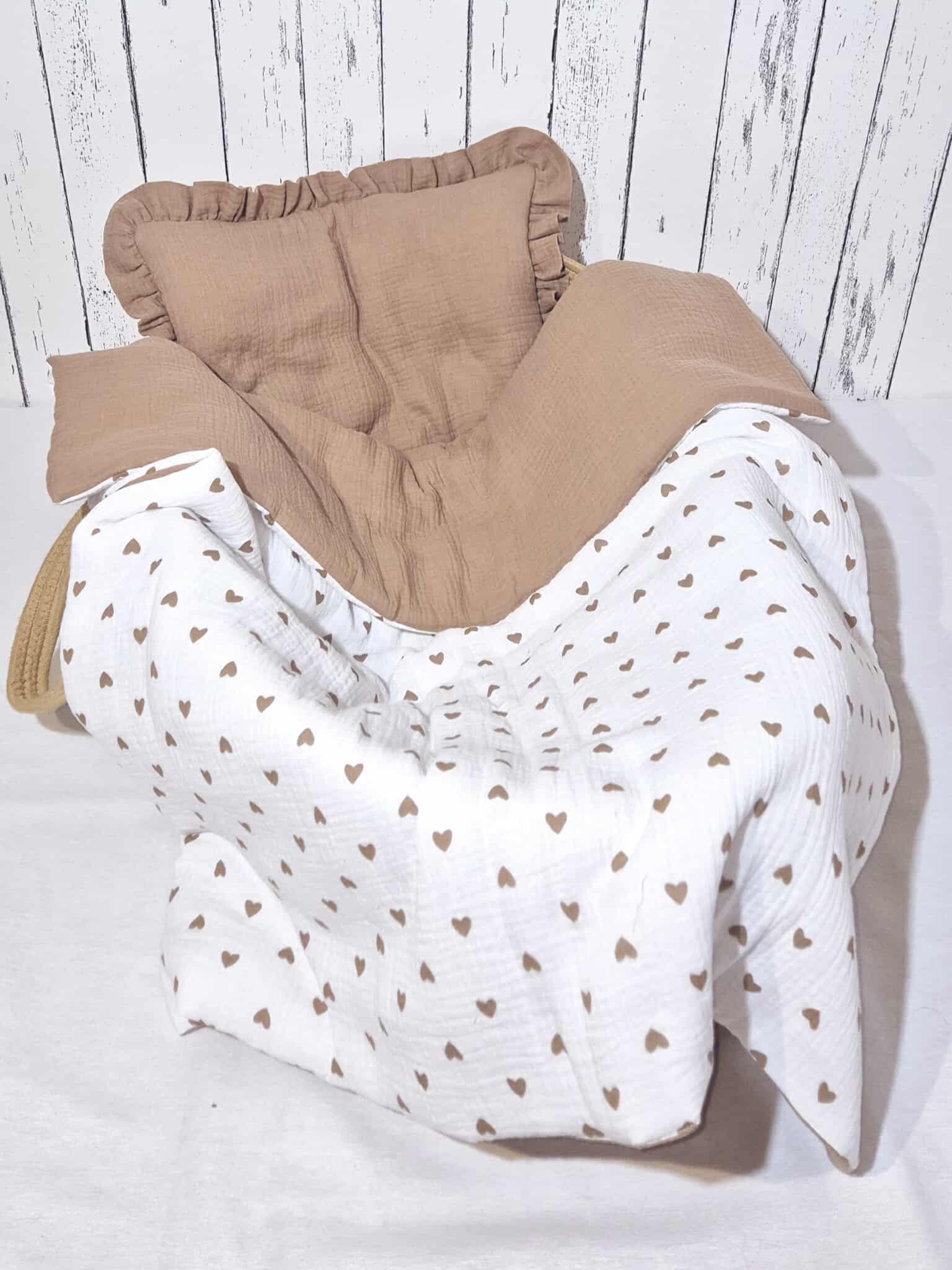 Śliczny Nowy zestaw KOŁDERKA + PODUSIA , ,+ możliwy WOREK do zapakowania całości (Muślin)