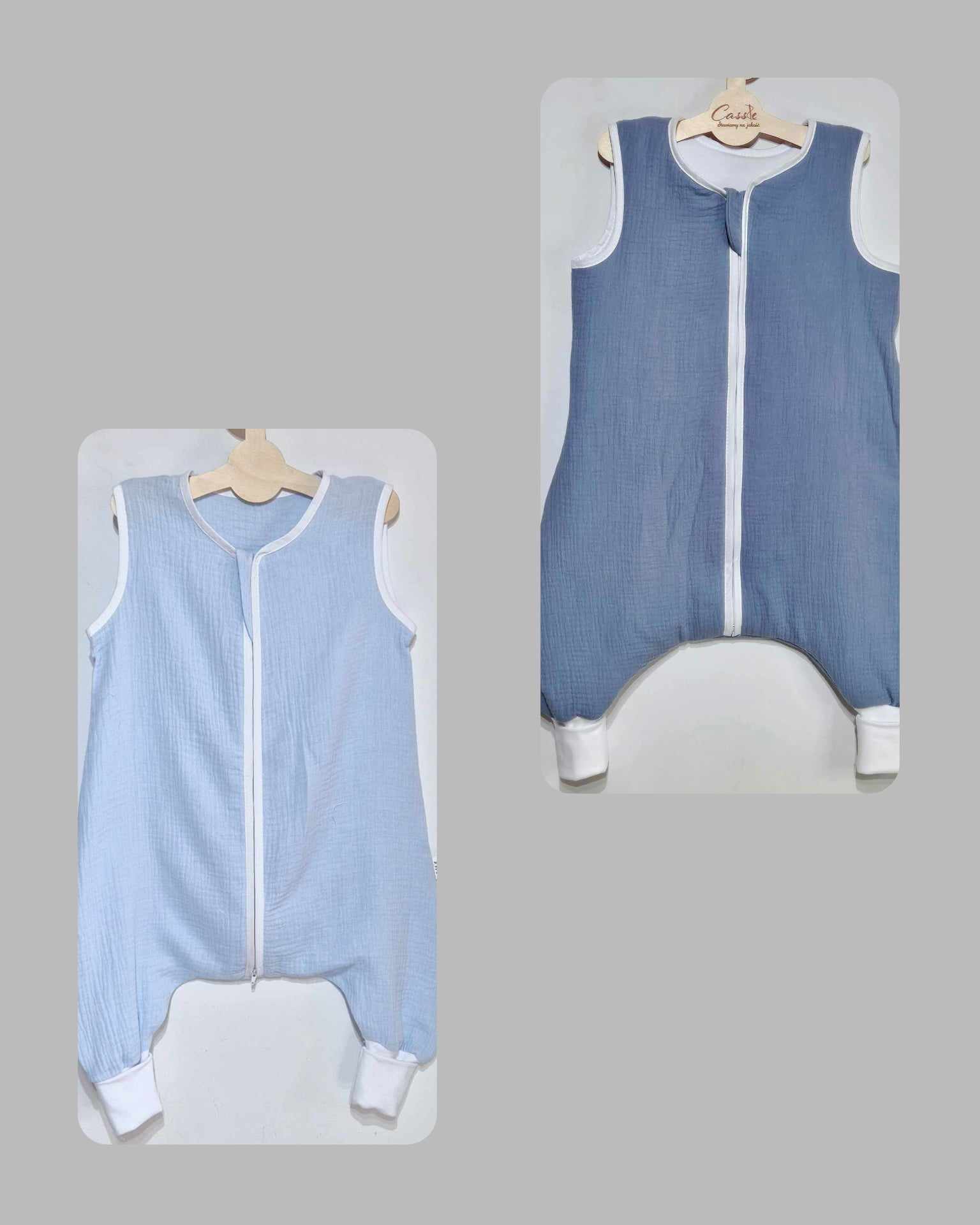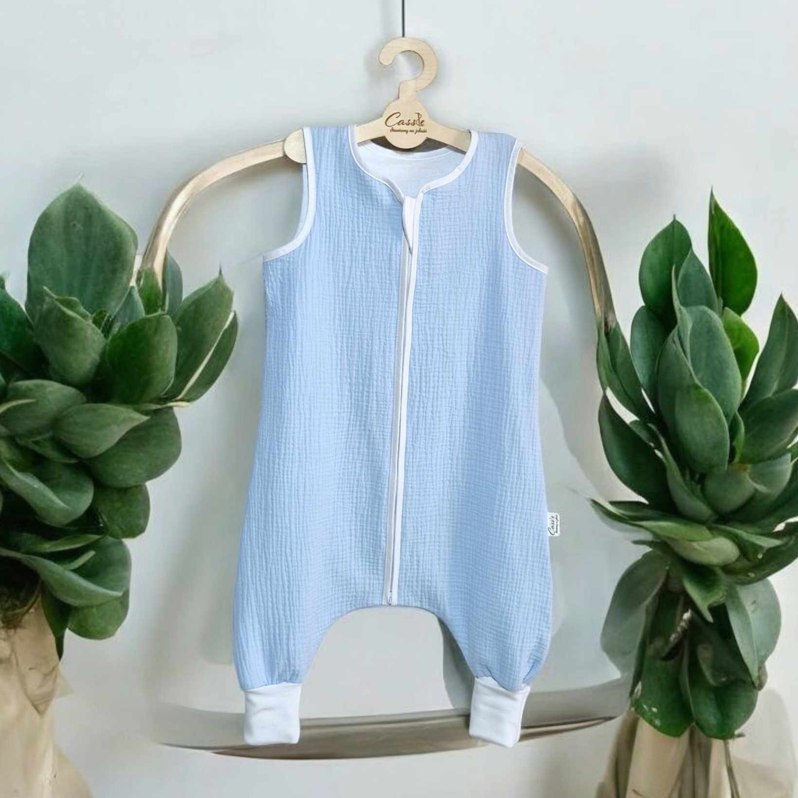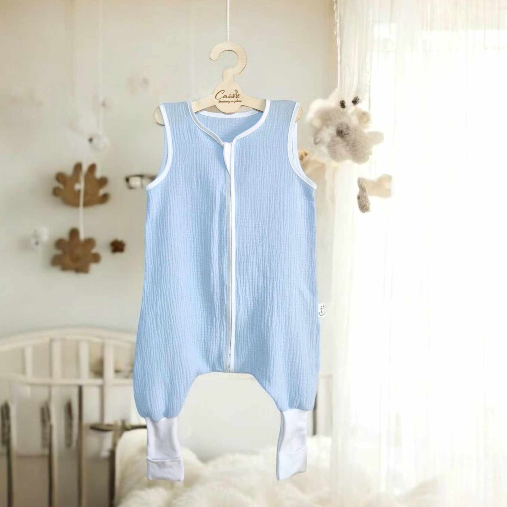 Muślinowy Śpiworek z nogawkami -kolor- Baby blue