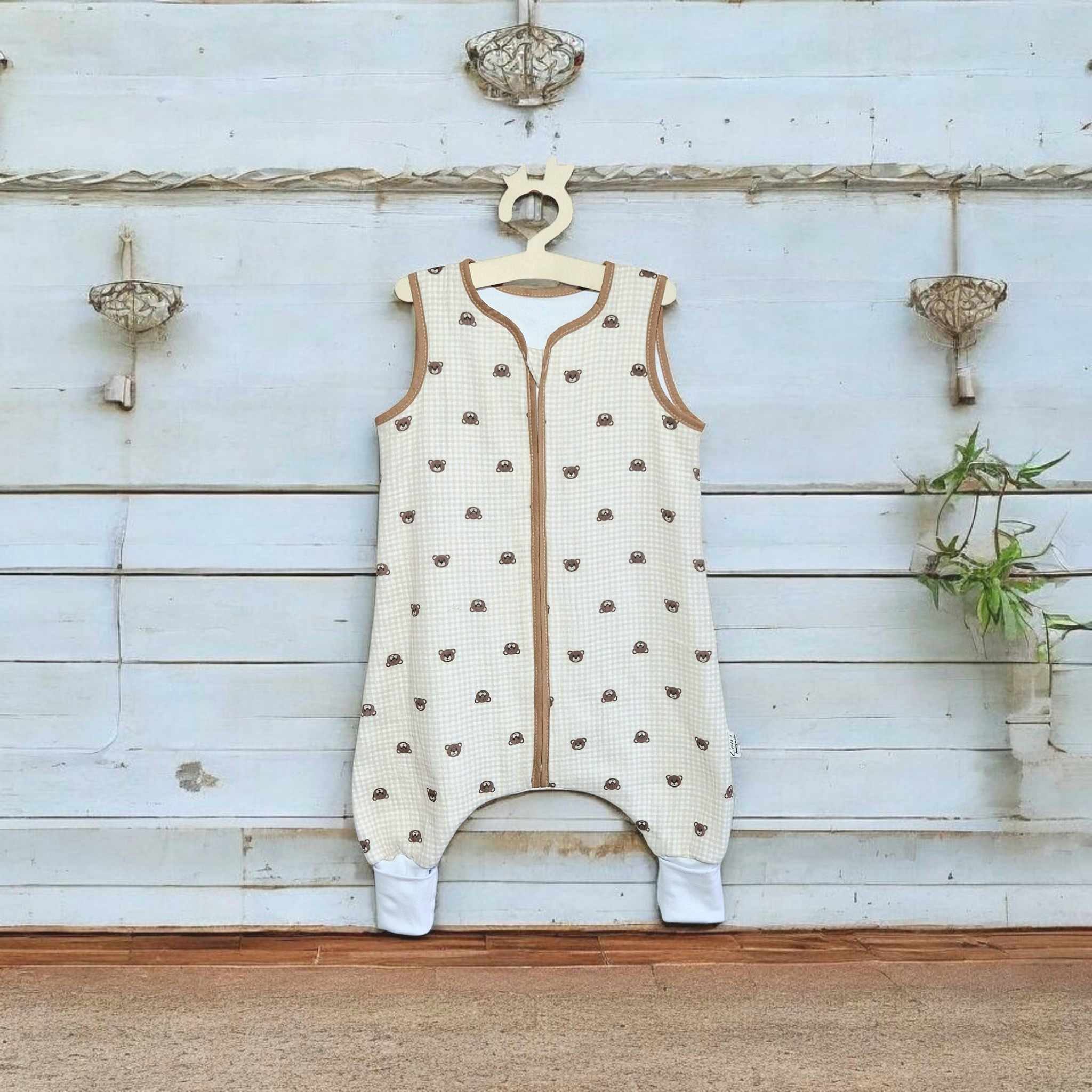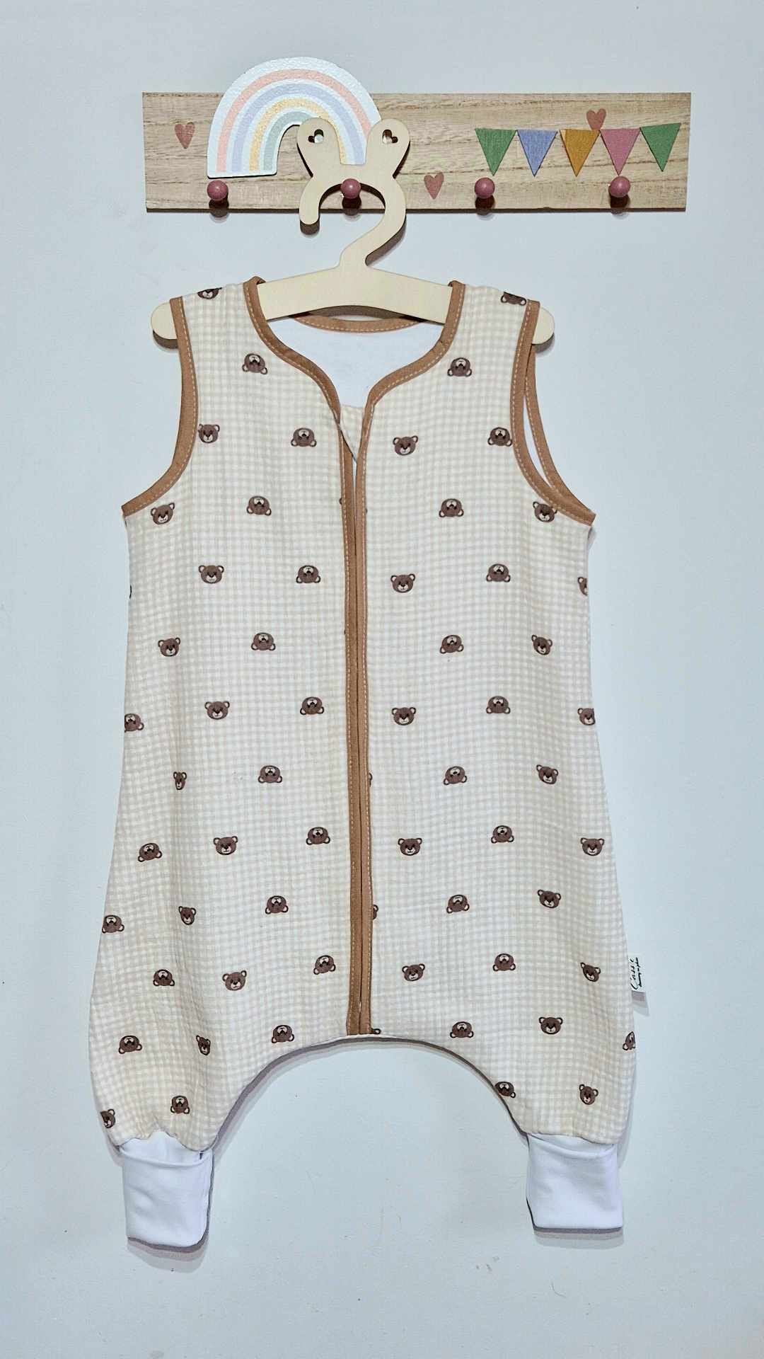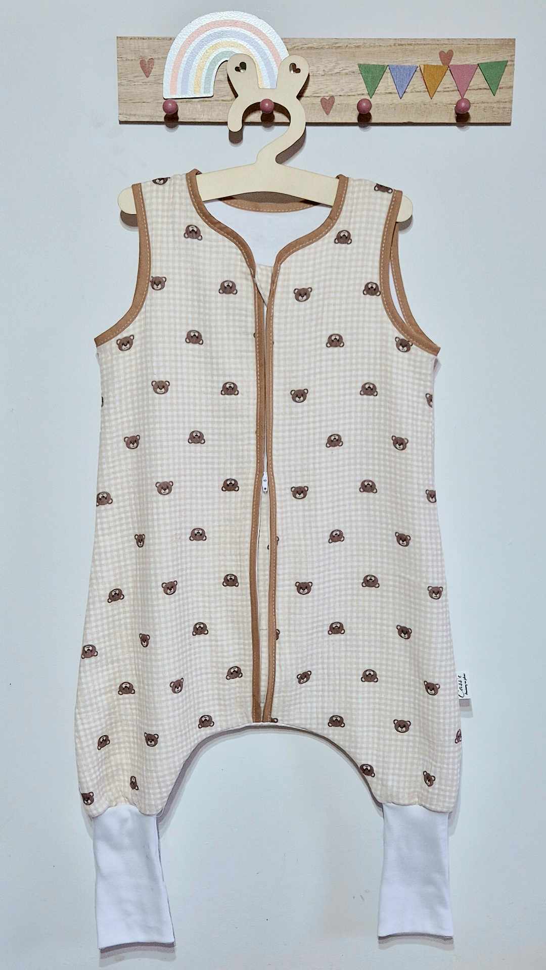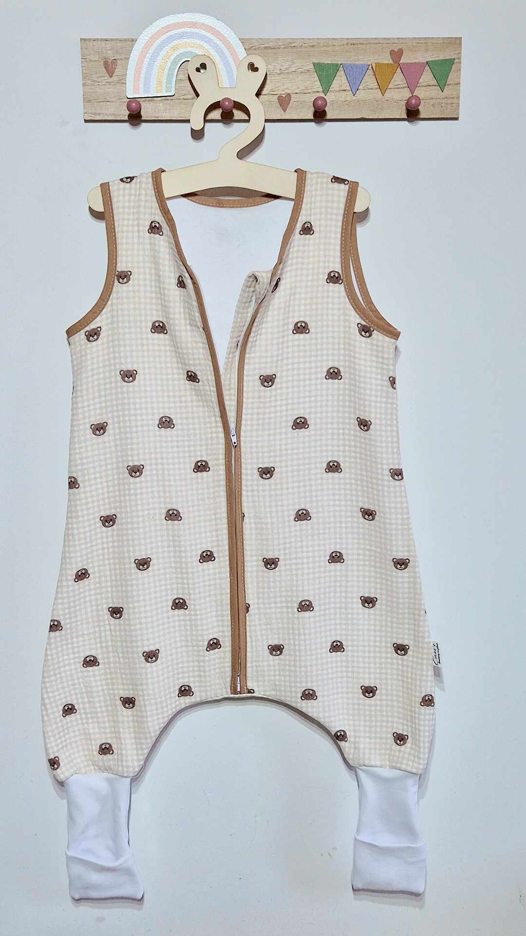 Muślinowy Śpiworek z nogawkami -wzór- Głowy misia