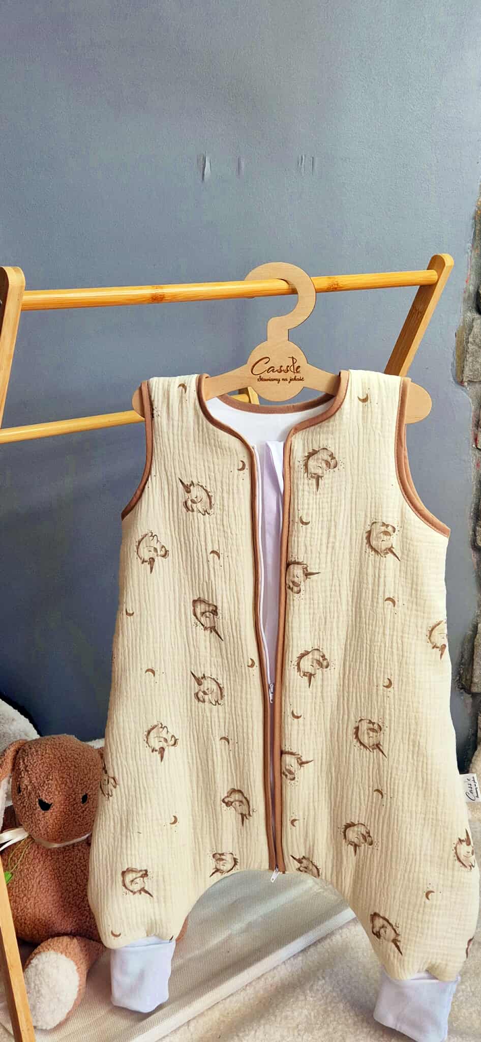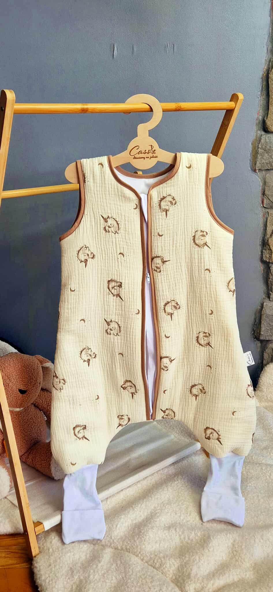 Śpiworek uszyty z Muślinu, W 1,5 tog i 2,5 tog -wypełnienie antyalergiczna włóknina silikonowa. 1 tog 2 warstwy bez ocieplenia .0,5 tog 1 warstwa materiału (zalecany na gorące noce i dni aby nie przegrzać dziecka)