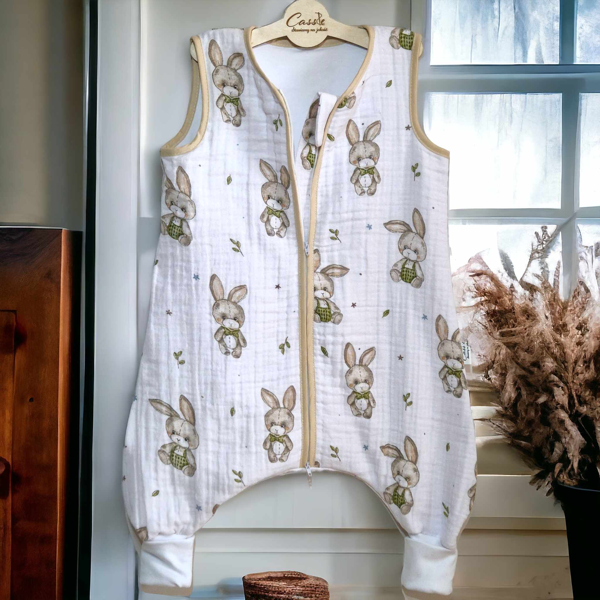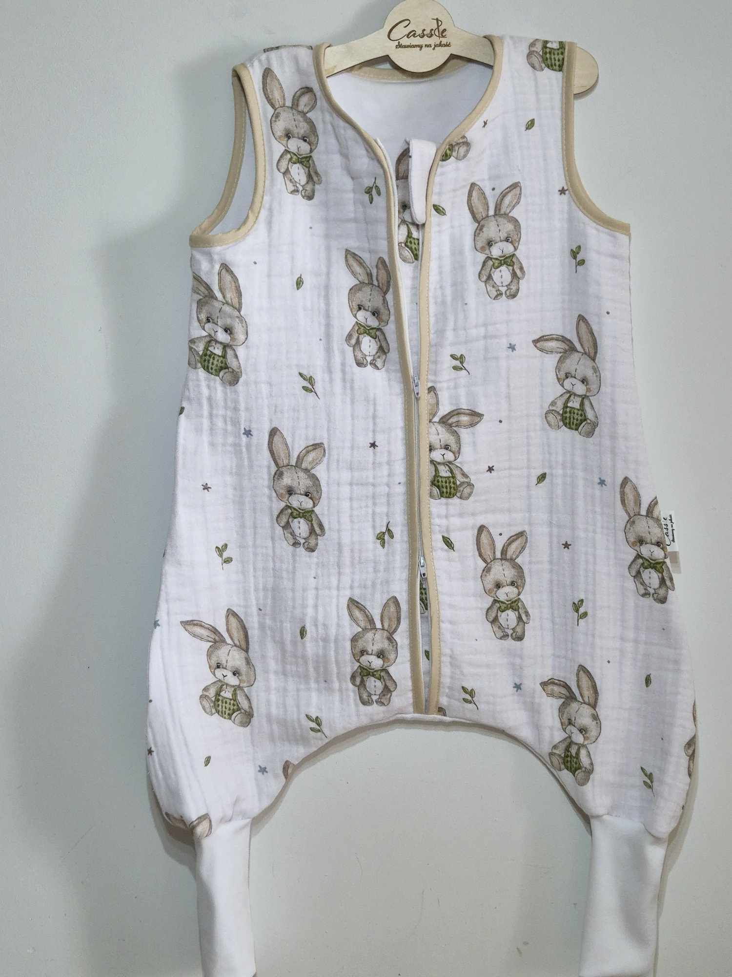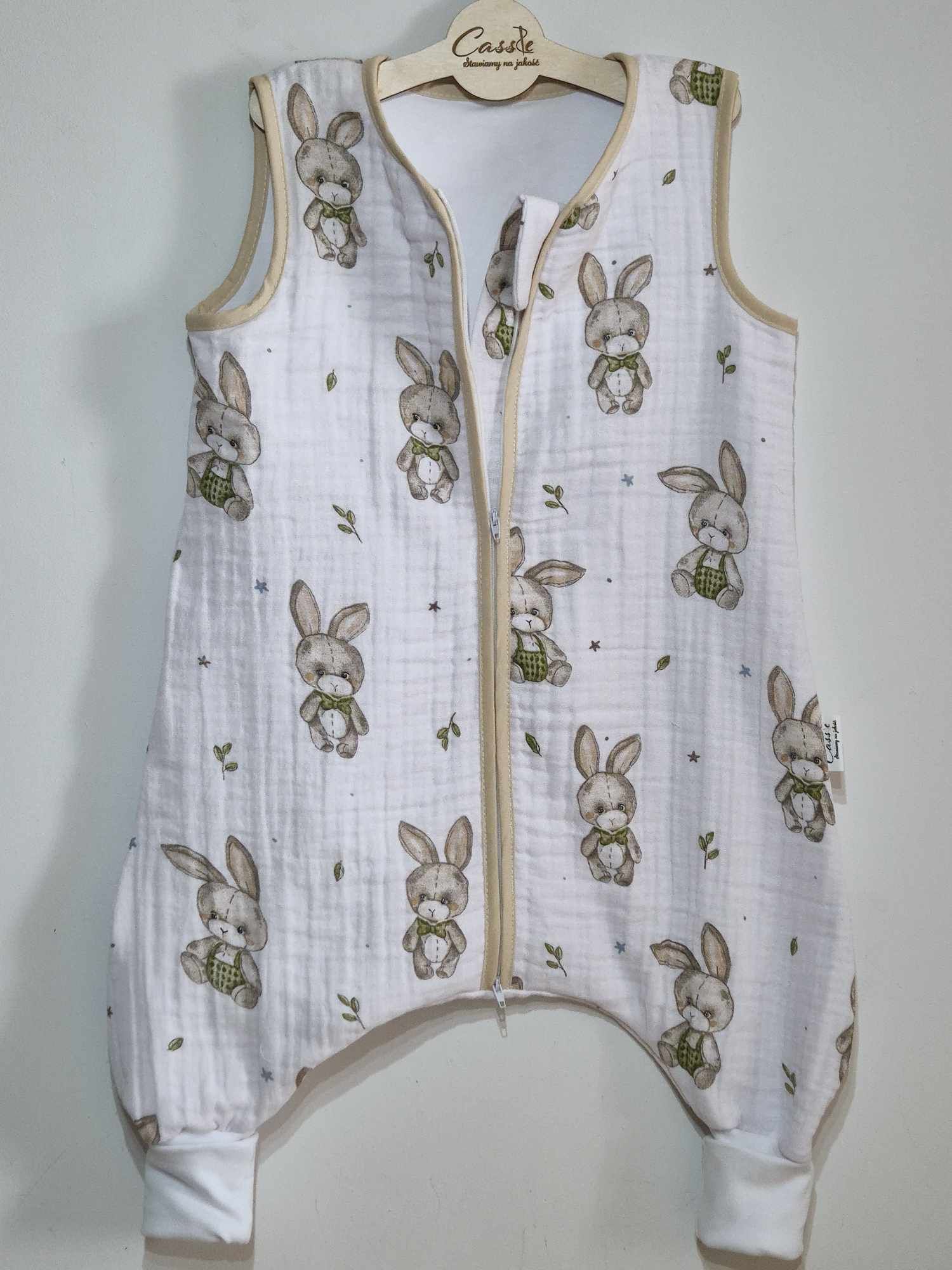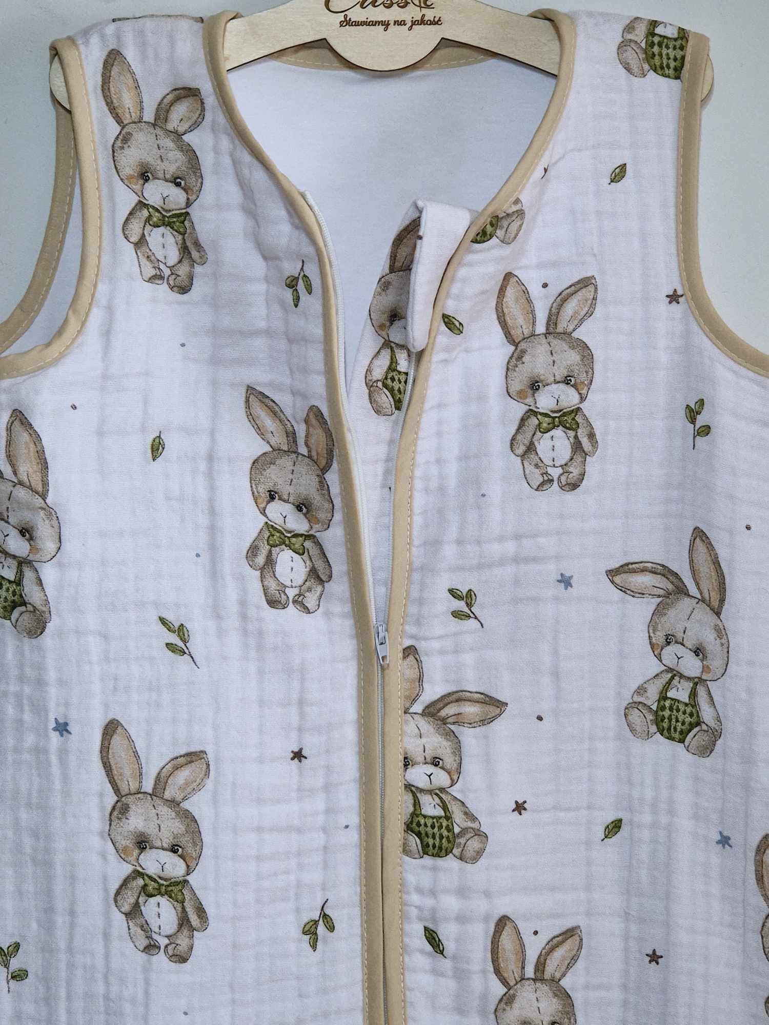 Muślinowy Śpiworek z nogawkami -wzór- Króliczki Beżowe