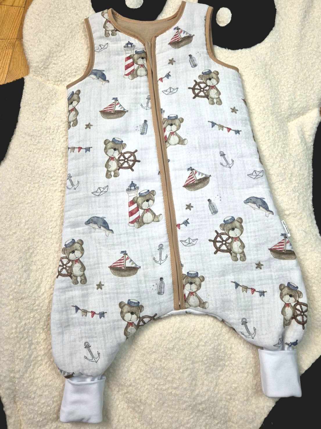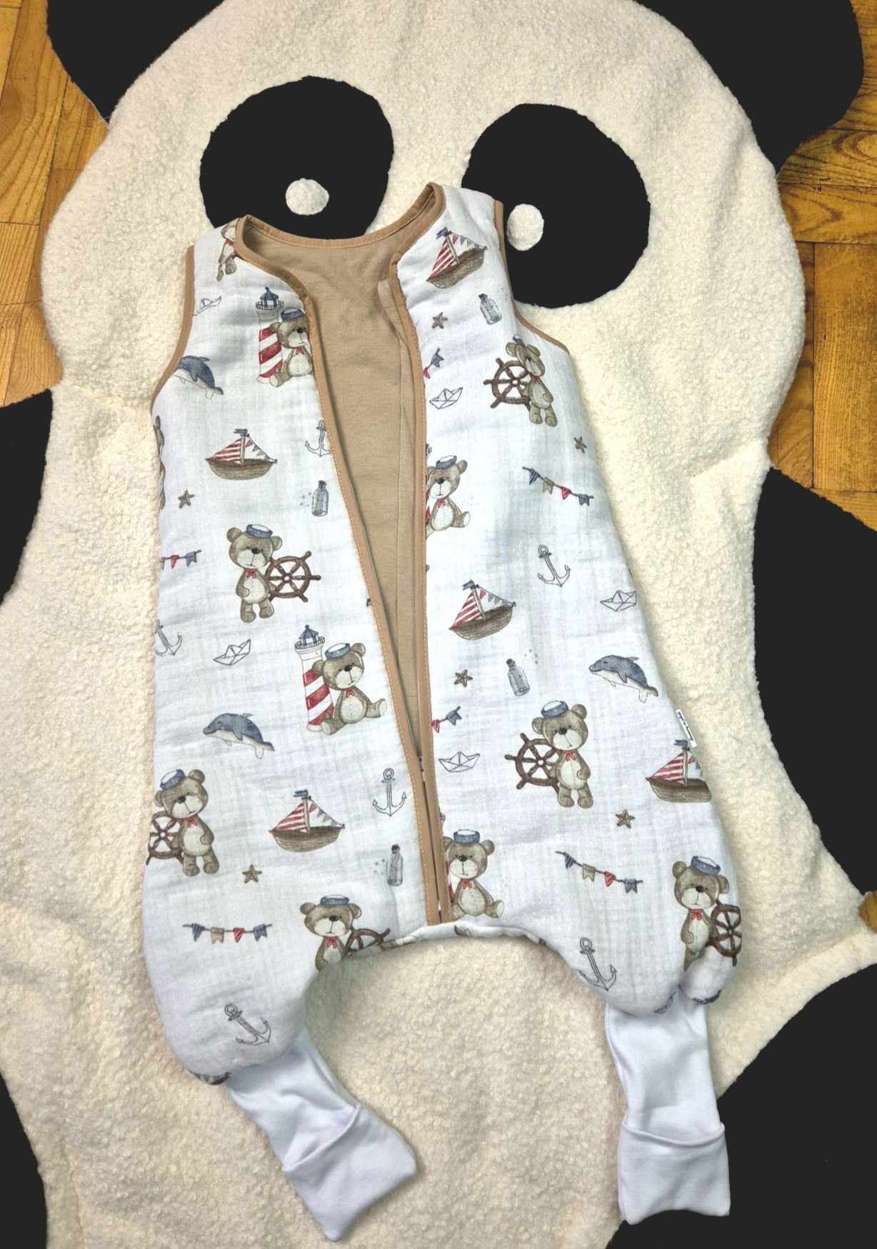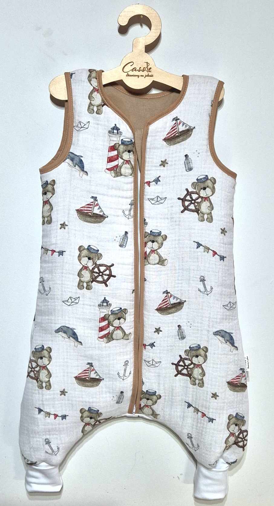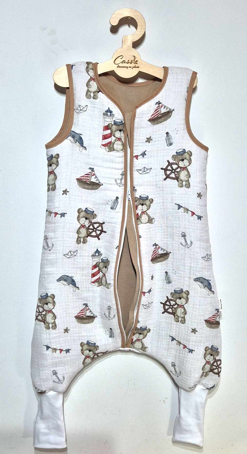 Muślinowy Śpiworek z nogawkami -wzór- Marynarz