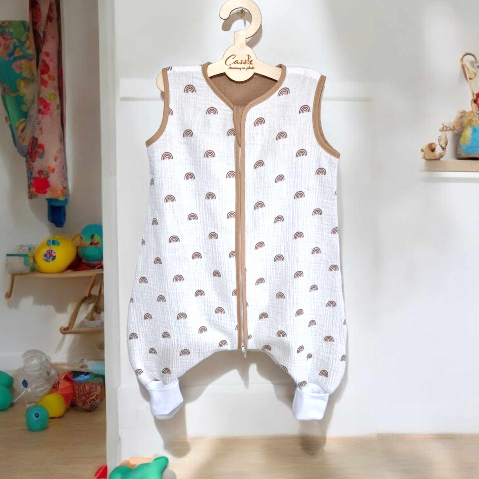 Muślinowy Śpiworek z nogawkami -wzór- Tęcze
