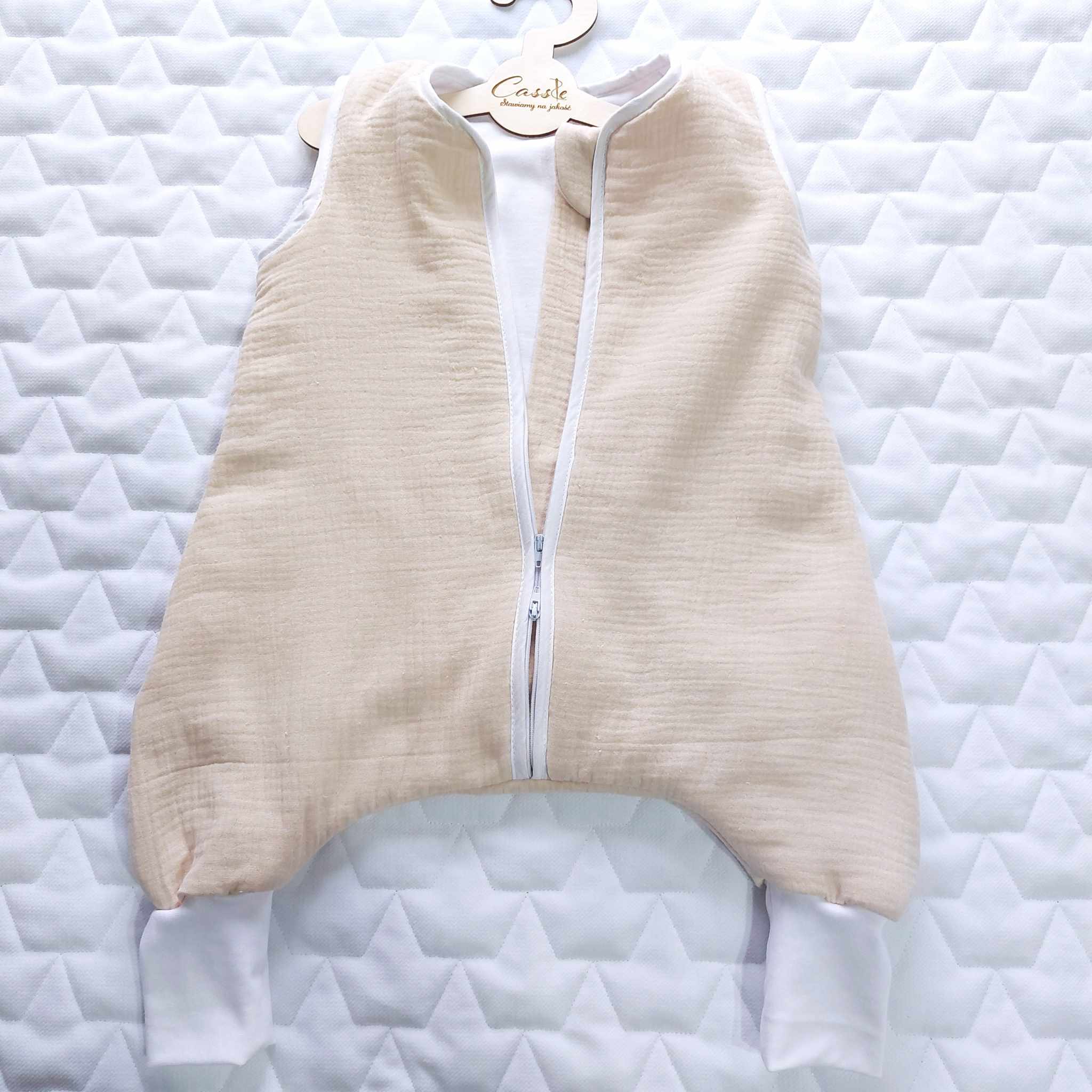 PROMOCJA!-MUŚLINOWY Śpiworek z nogawkami rozm. 80+ (kolor Beż)