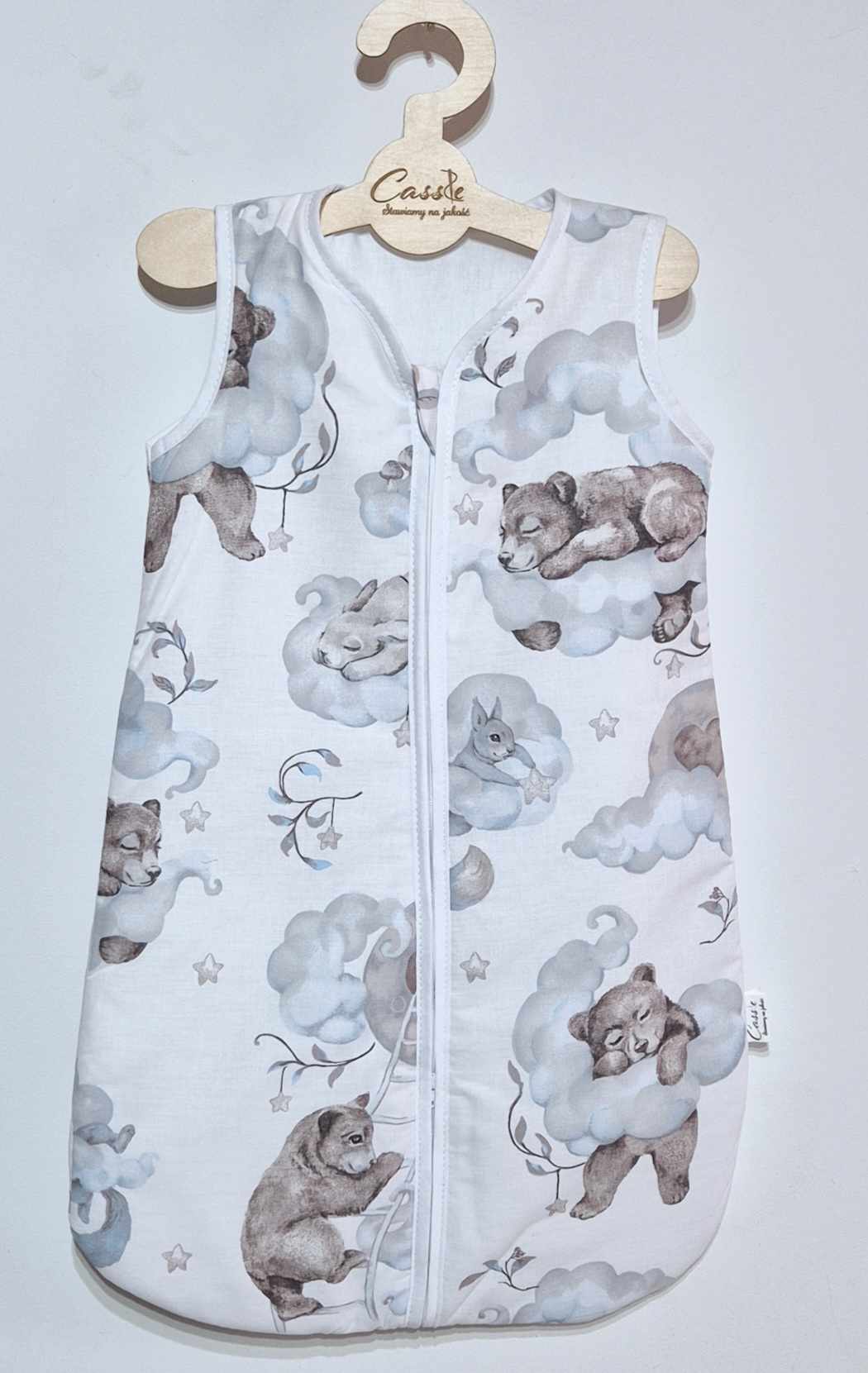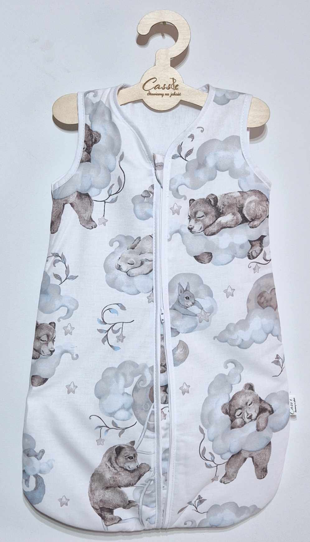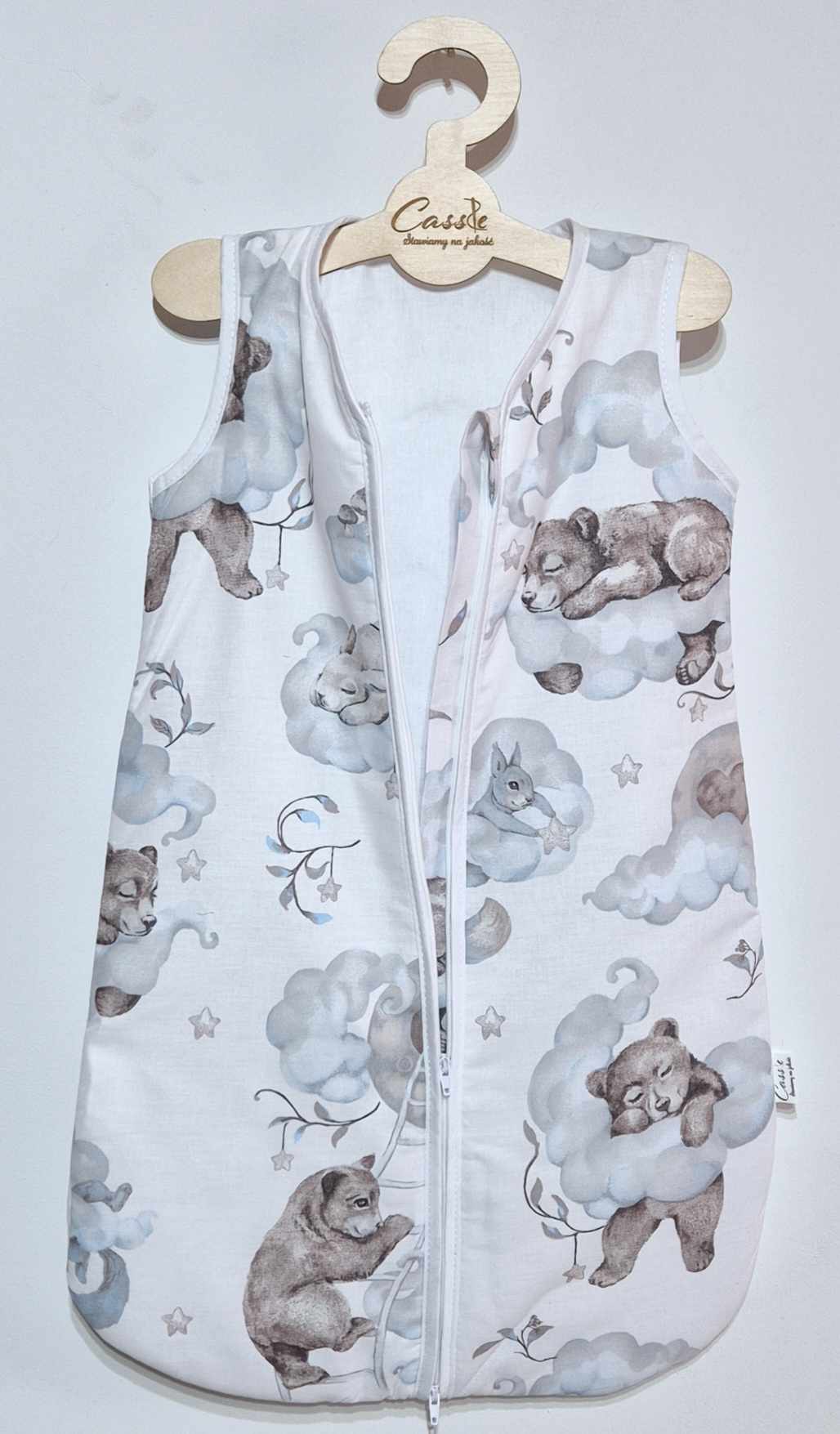 Śpiworek uszyty z bawełny, W 1,5 tog i 2,5 tog -wypełnienie antyalergiczna włóknina silikonowa. 1 tog -2 warstwy bez ocieplenia a .0,5 tog 1 warstwa materiału (zalecany na gorące noce i dni aby nie przegrzać dziecka)