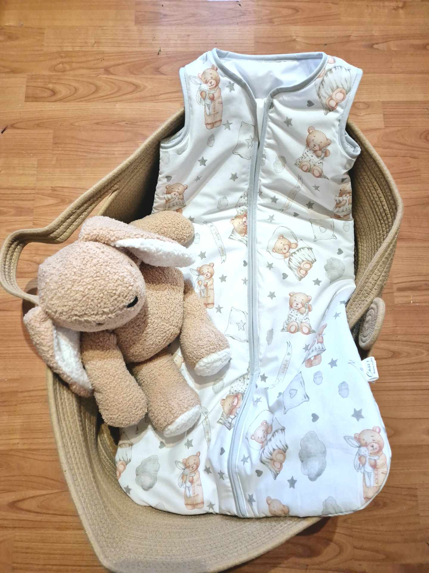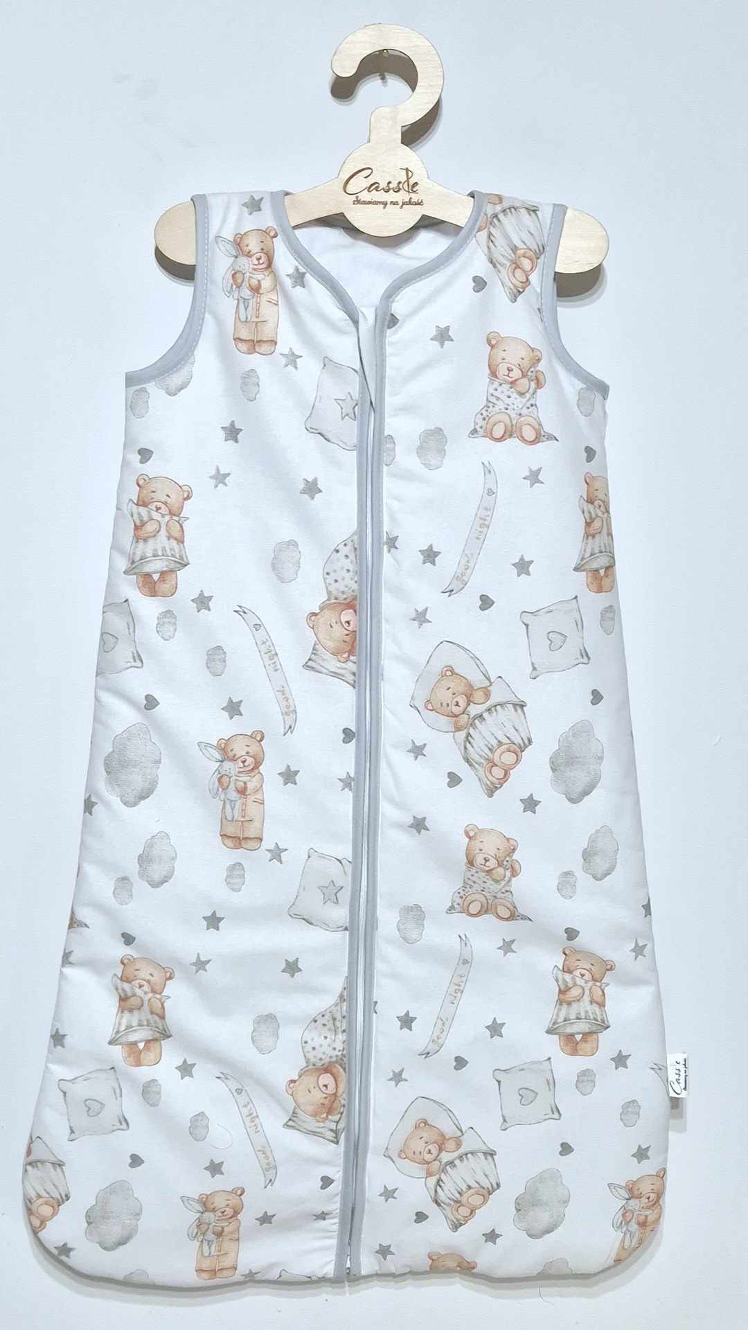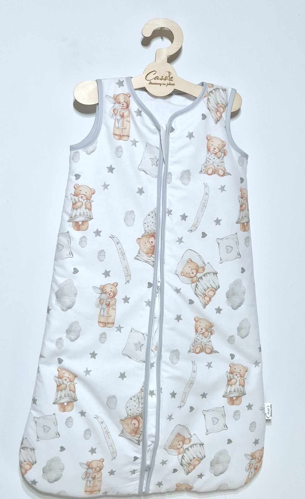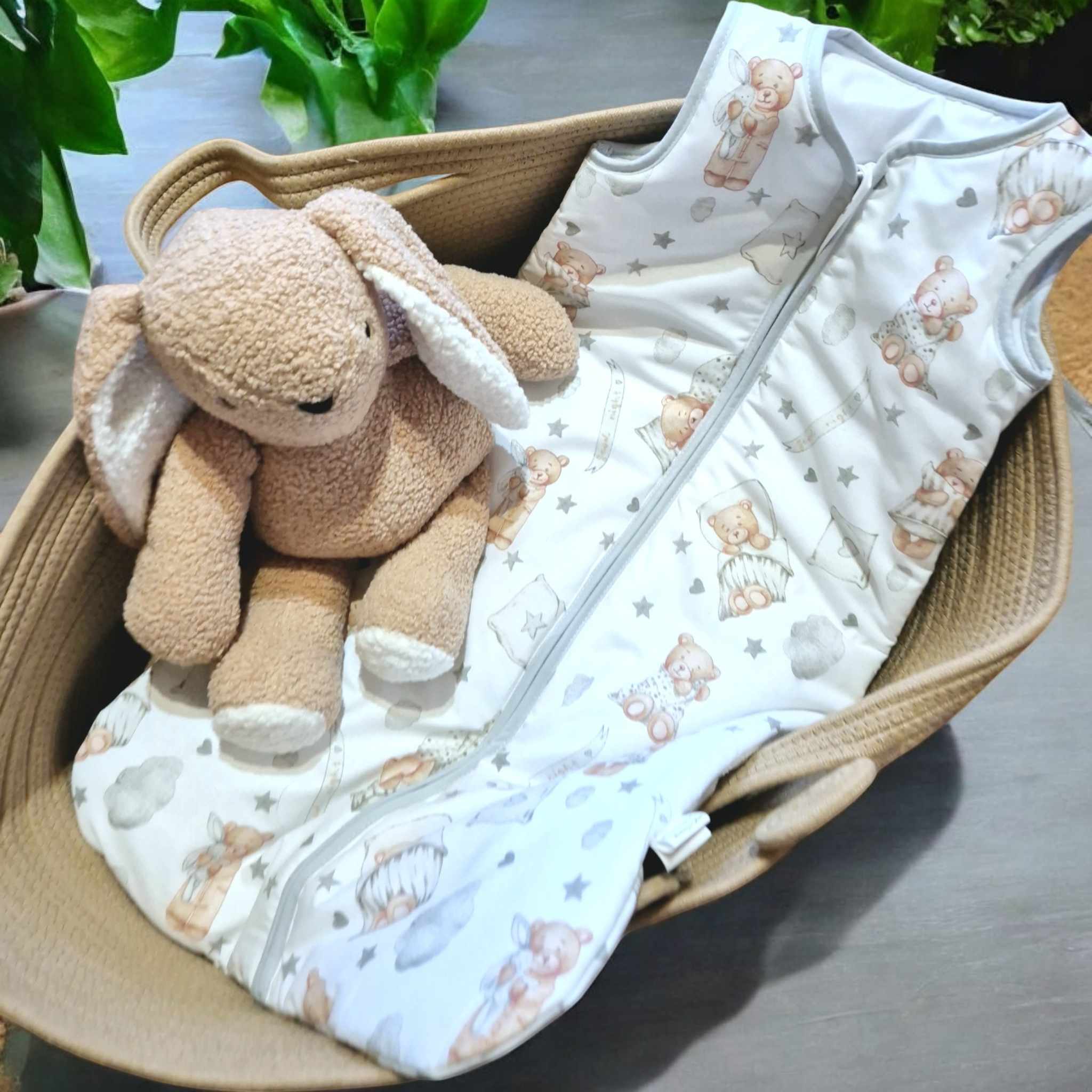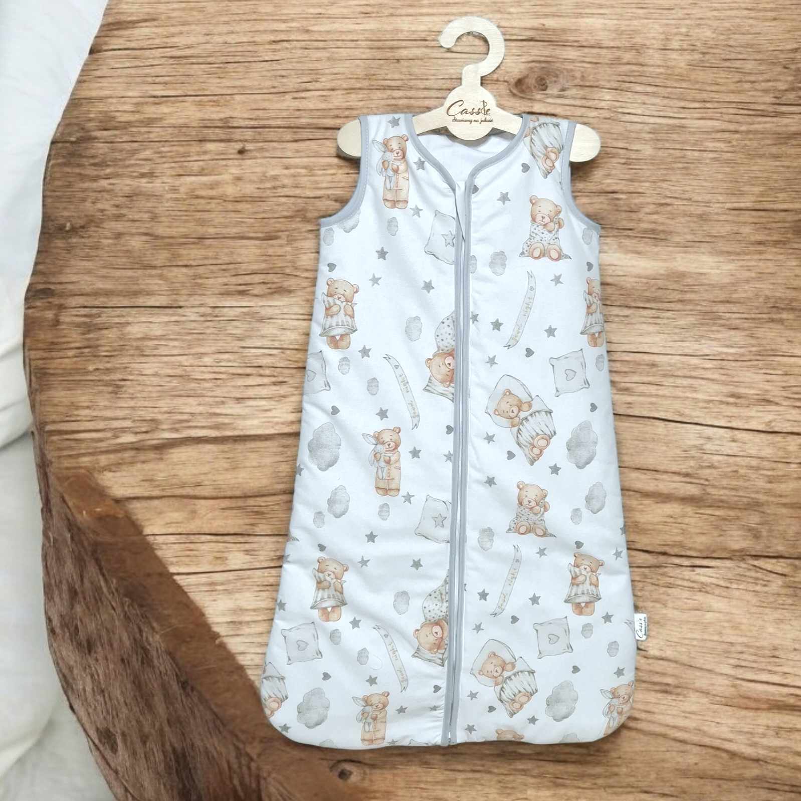 Śpiworek uszyty z bawełny, W 1,5 tog i 2,5 tog -wypełnienie antyalergiczna włóknina silikonowa. 1 tog -2 warstwy bez ocieplenia a .0,5 tog 1 warstwa materiału (zalecany na gorące noce i dni aby nie przegrzać dziecka)