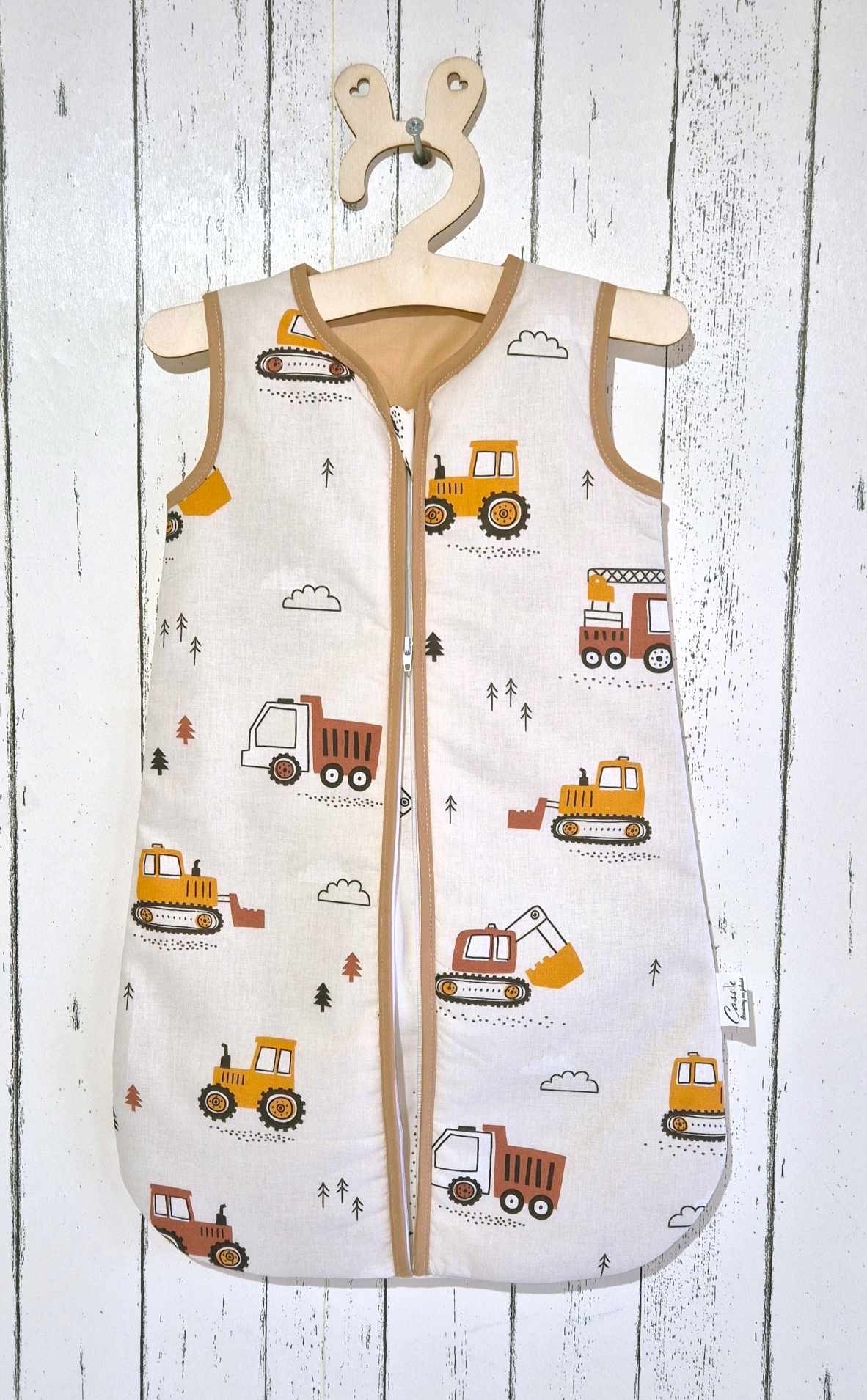 Śliczny Śpiworek KLASYCZNY   wzór -Traktory Beż