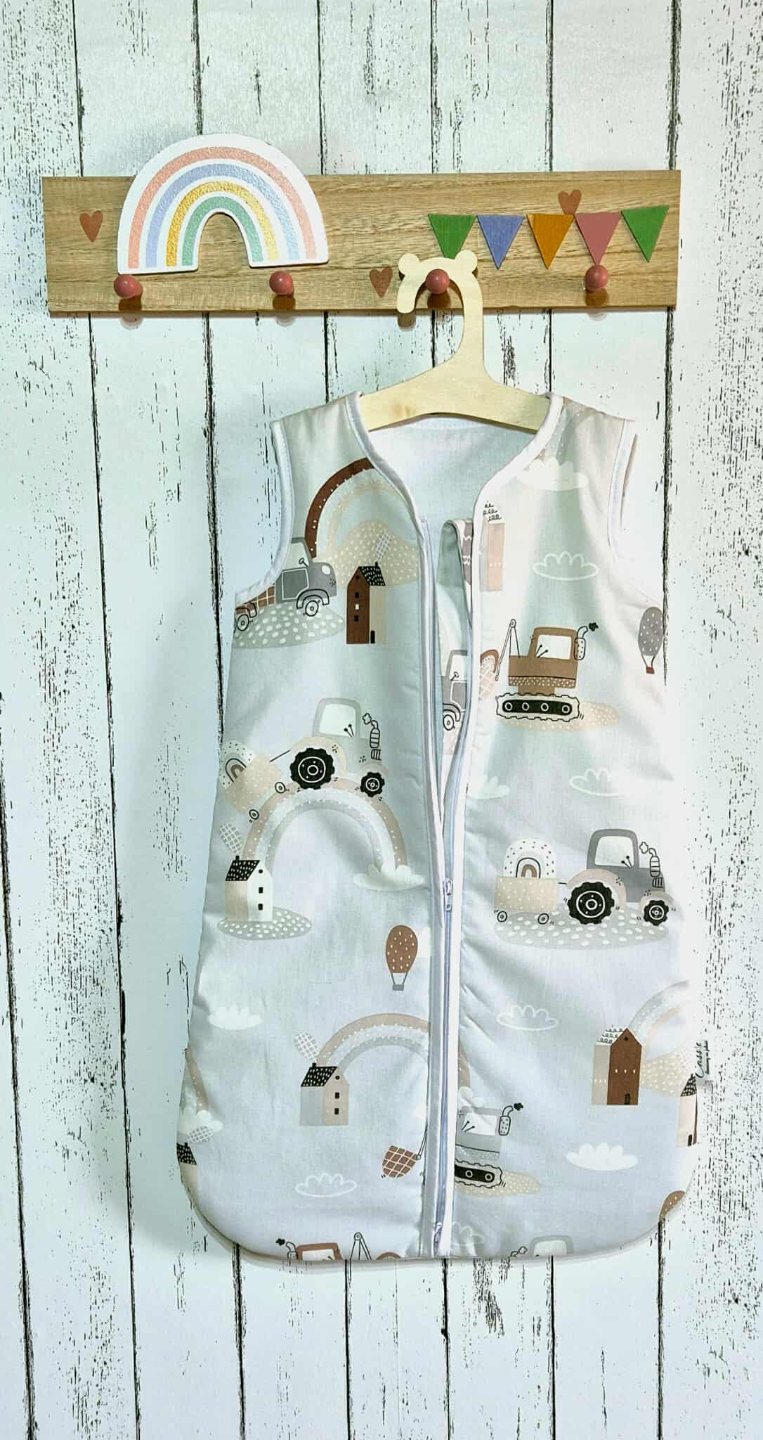 Śpiworek uszyty z bawełny, W 1,5 tog i 2,5 tog -wypełnienie antyalergiczna włóknina silikonowa. 1 tog -2 warstwy bez ocieplenia a .0,5 tog 1 warstwa materiału (zalecany na gorące noce i dni aby nie przegrzać dziecka)