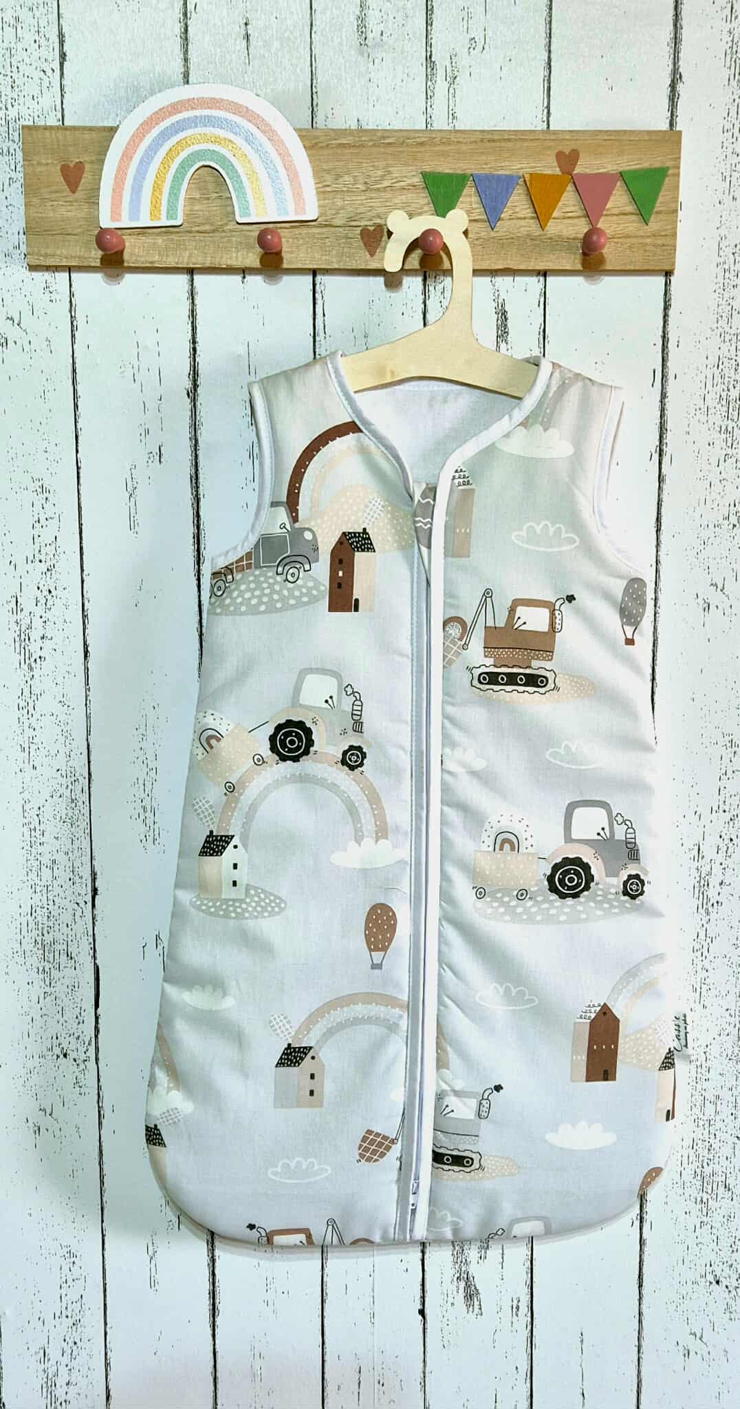 Śliczny Śpiworek KLASYCZNY   wzór Traktory szare