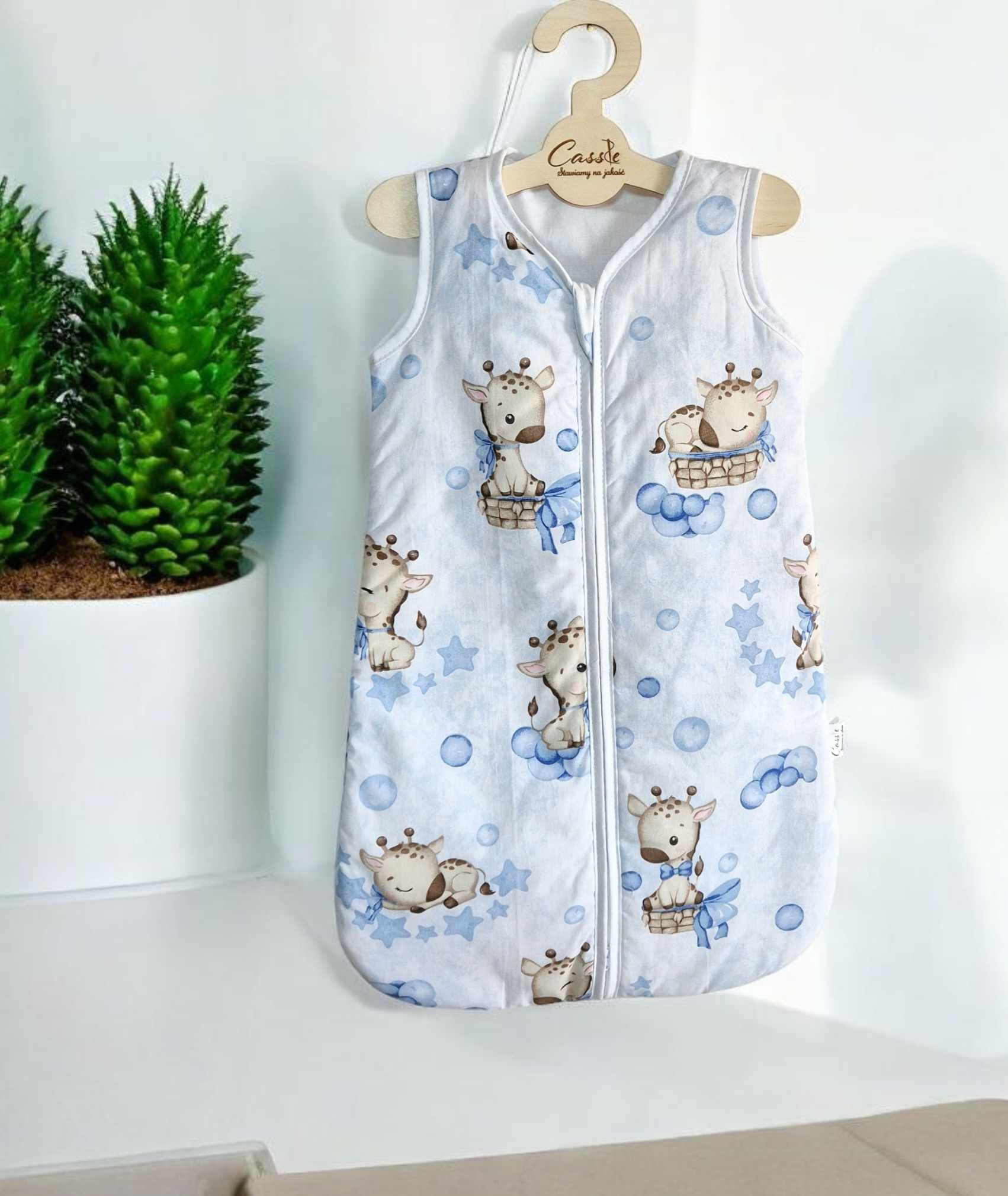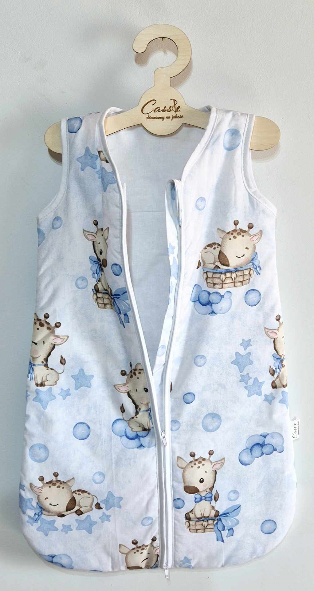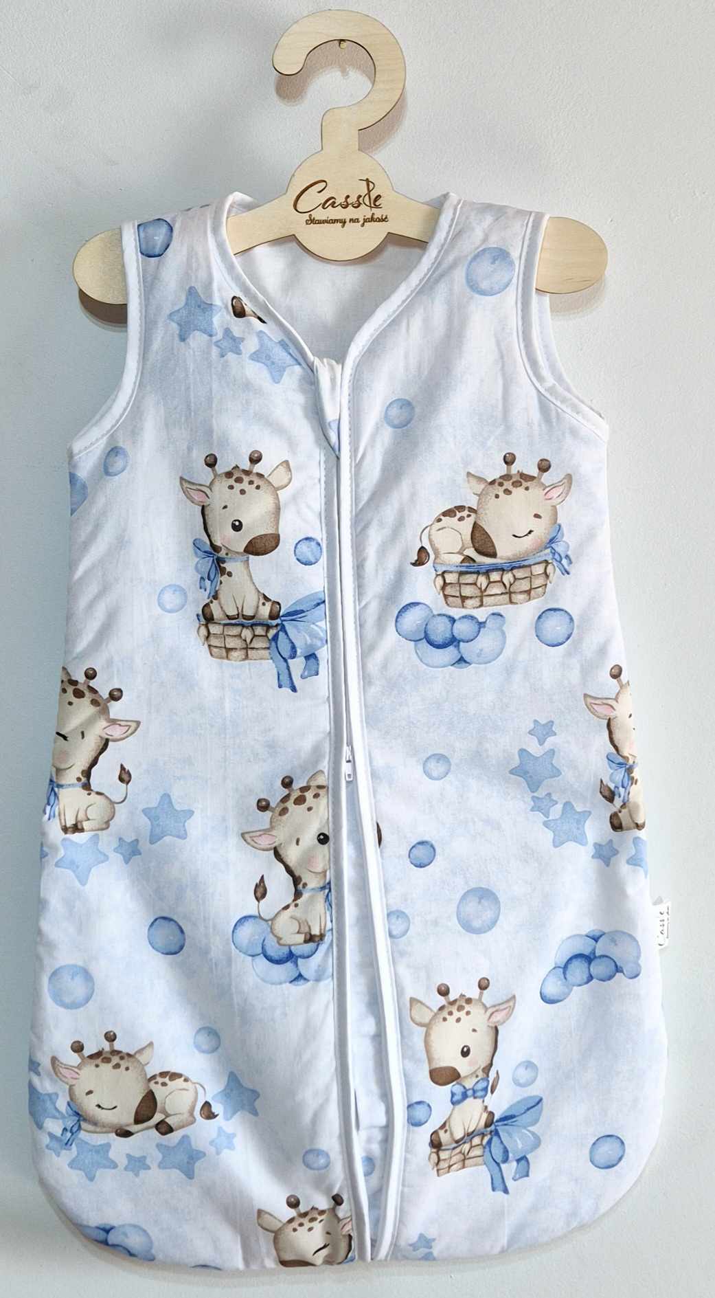 Śliczny Śpiworek KLASYCZNY wzór Żyrafa Niebieska