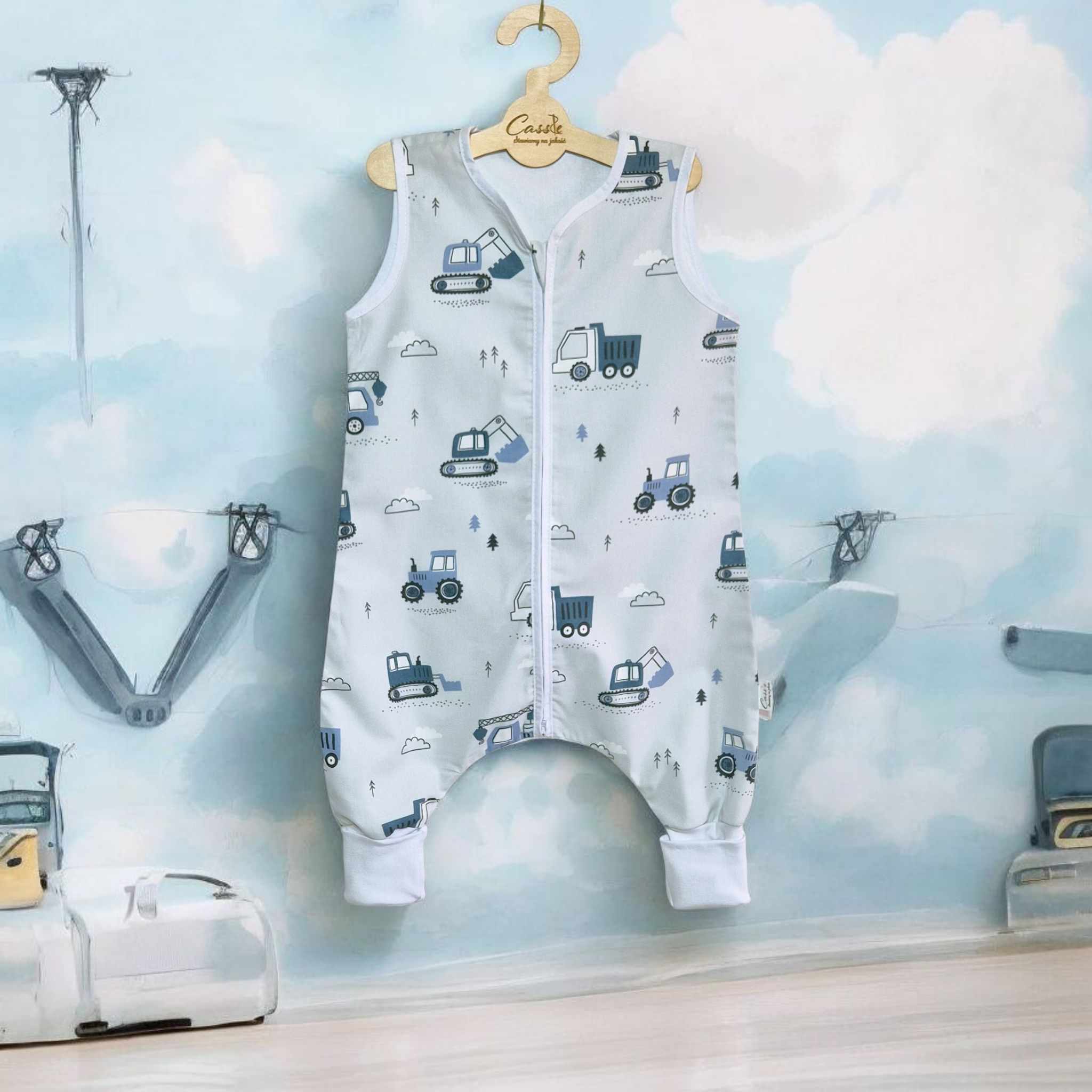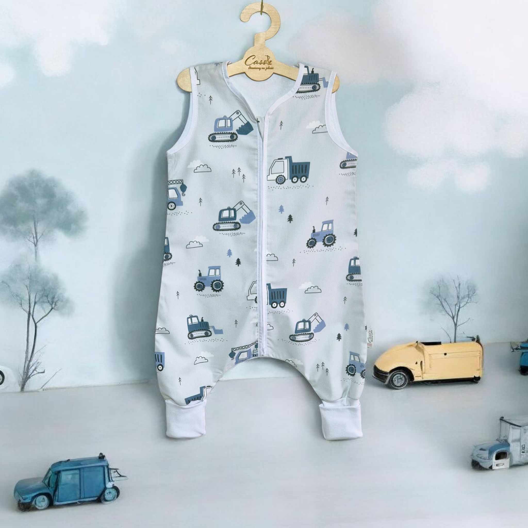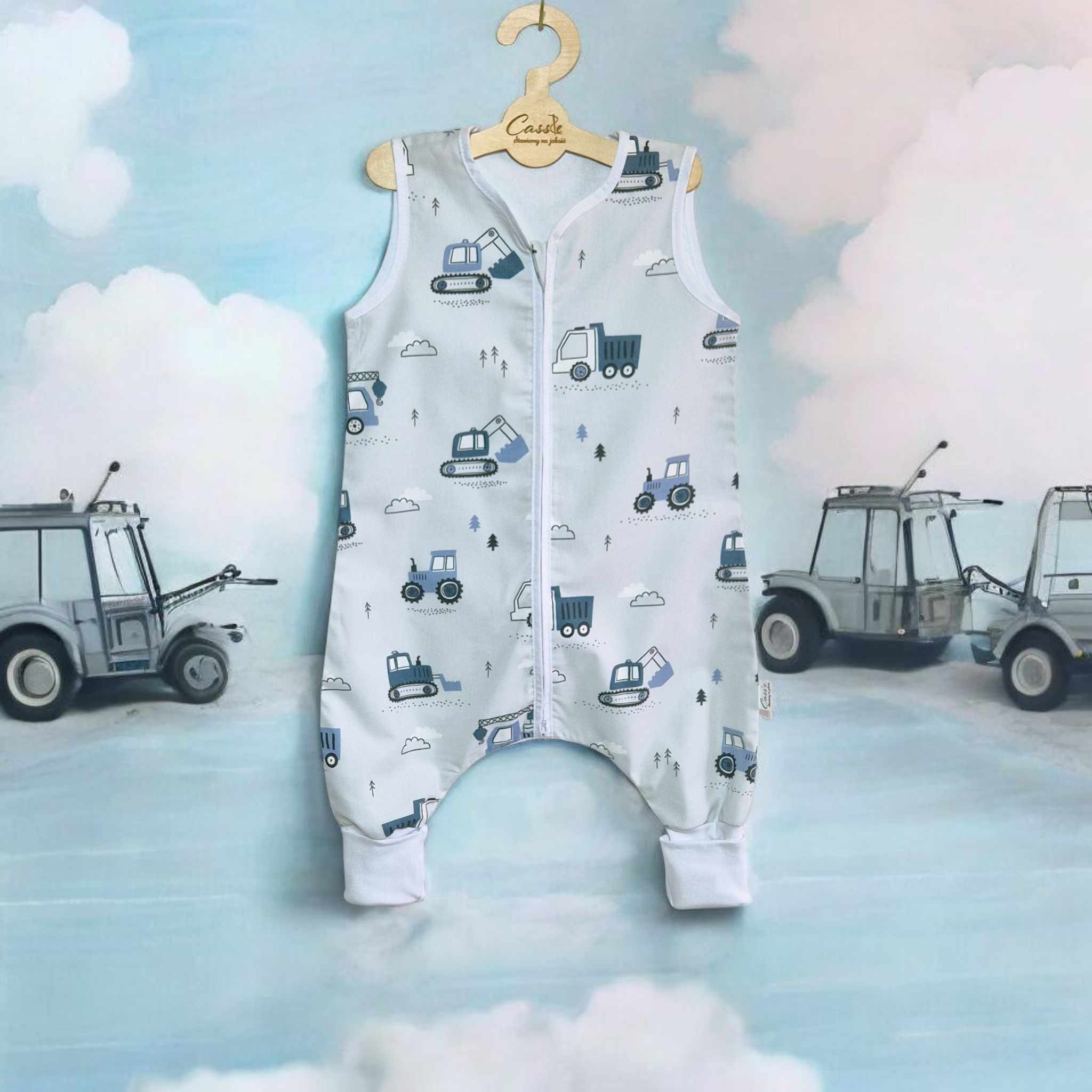 Śpiworek z nogawkami wzór-Traktory Niebieskie