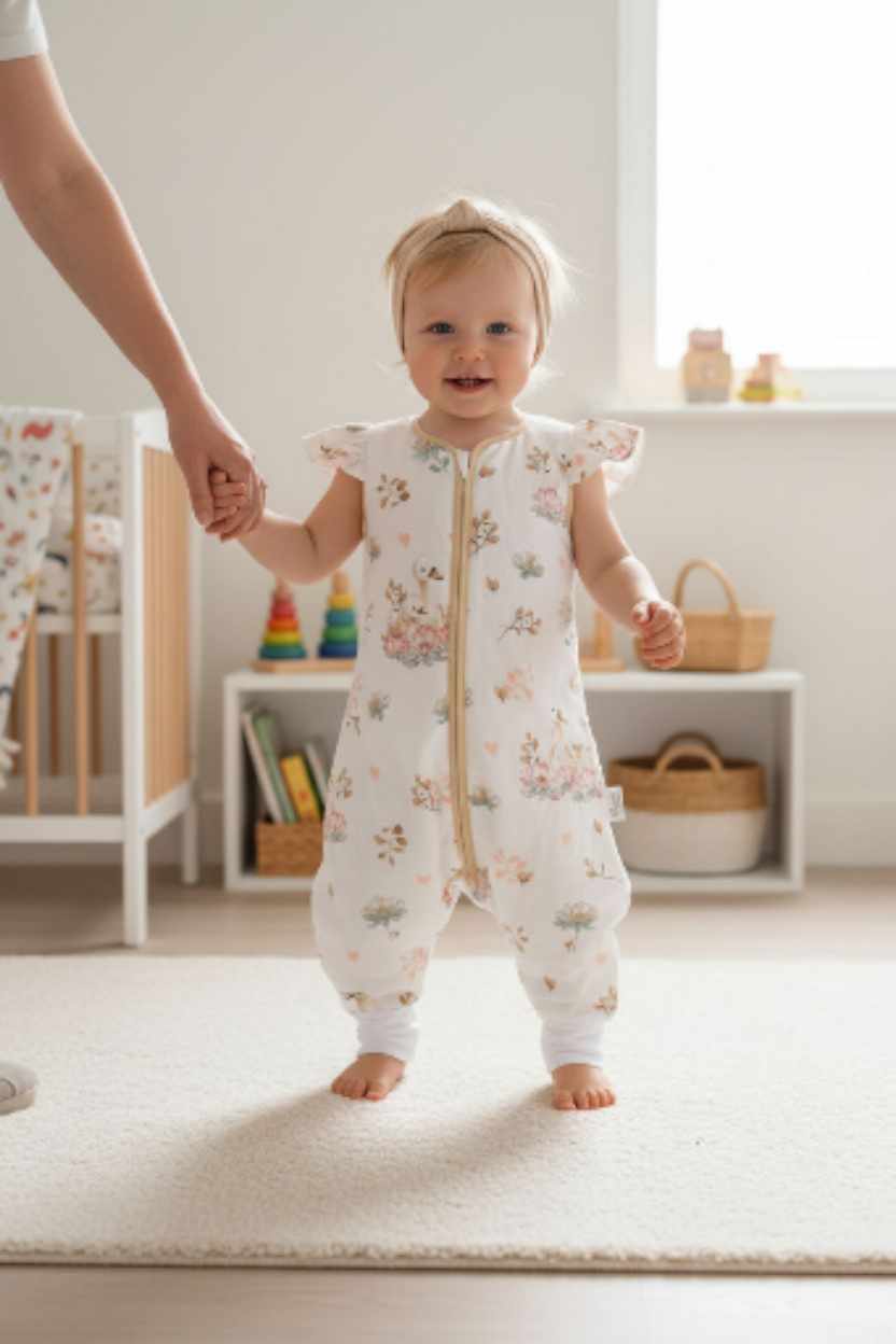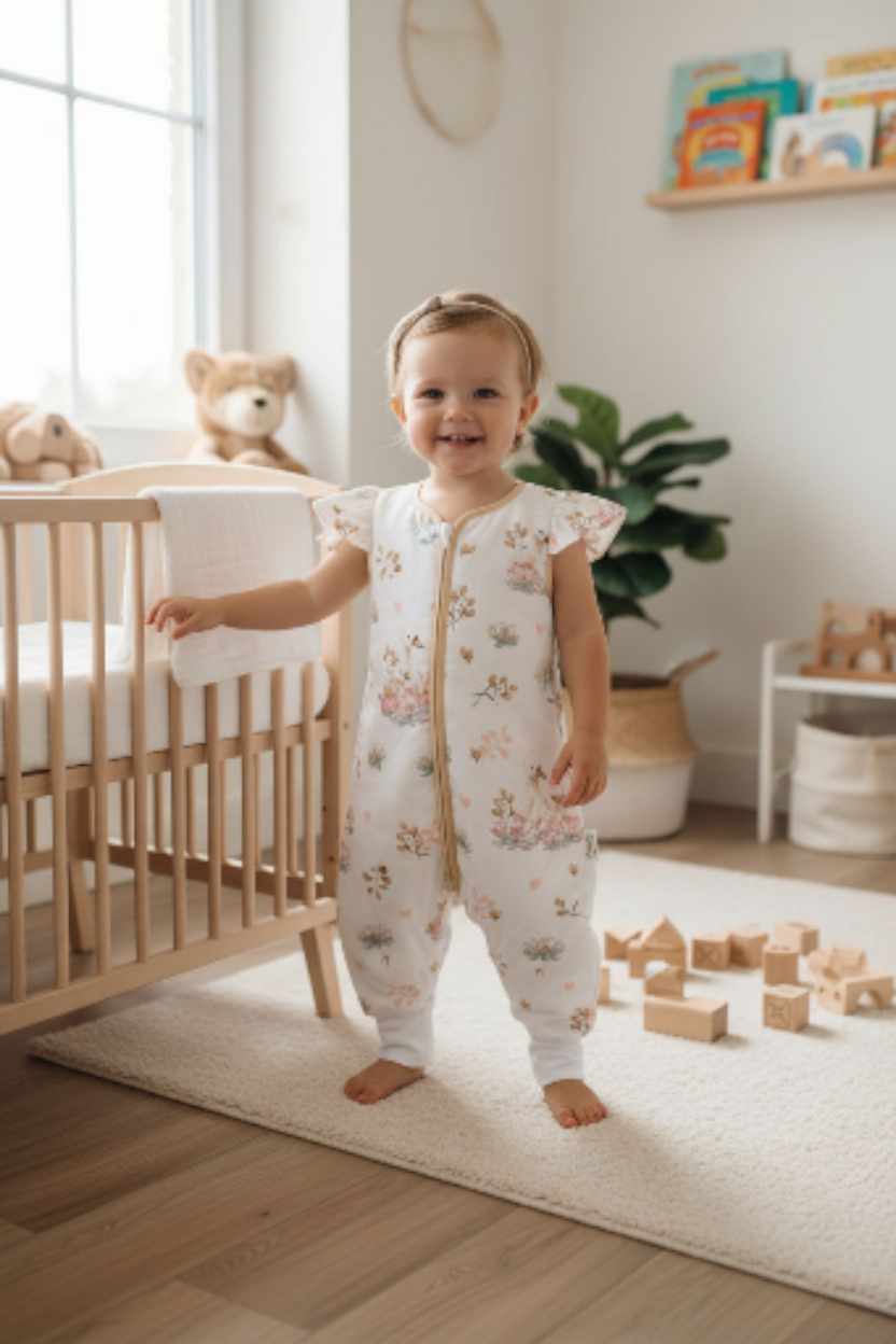 Doszyte mankiety ze ściągacza pozwolą na schowanie nóżek dziecka podczas snu.