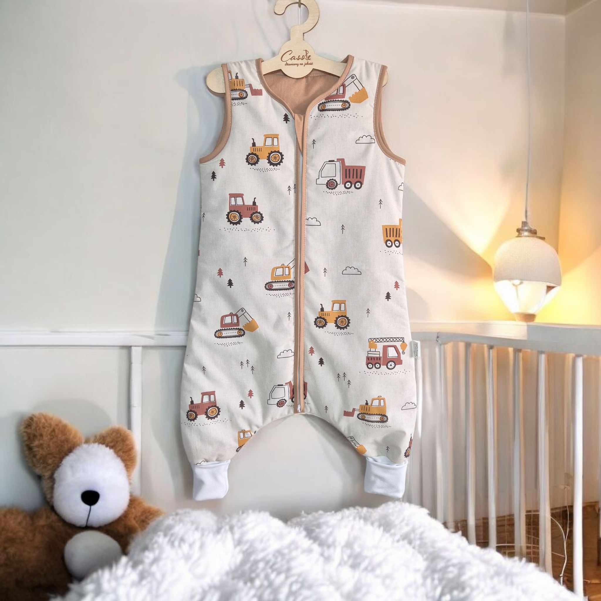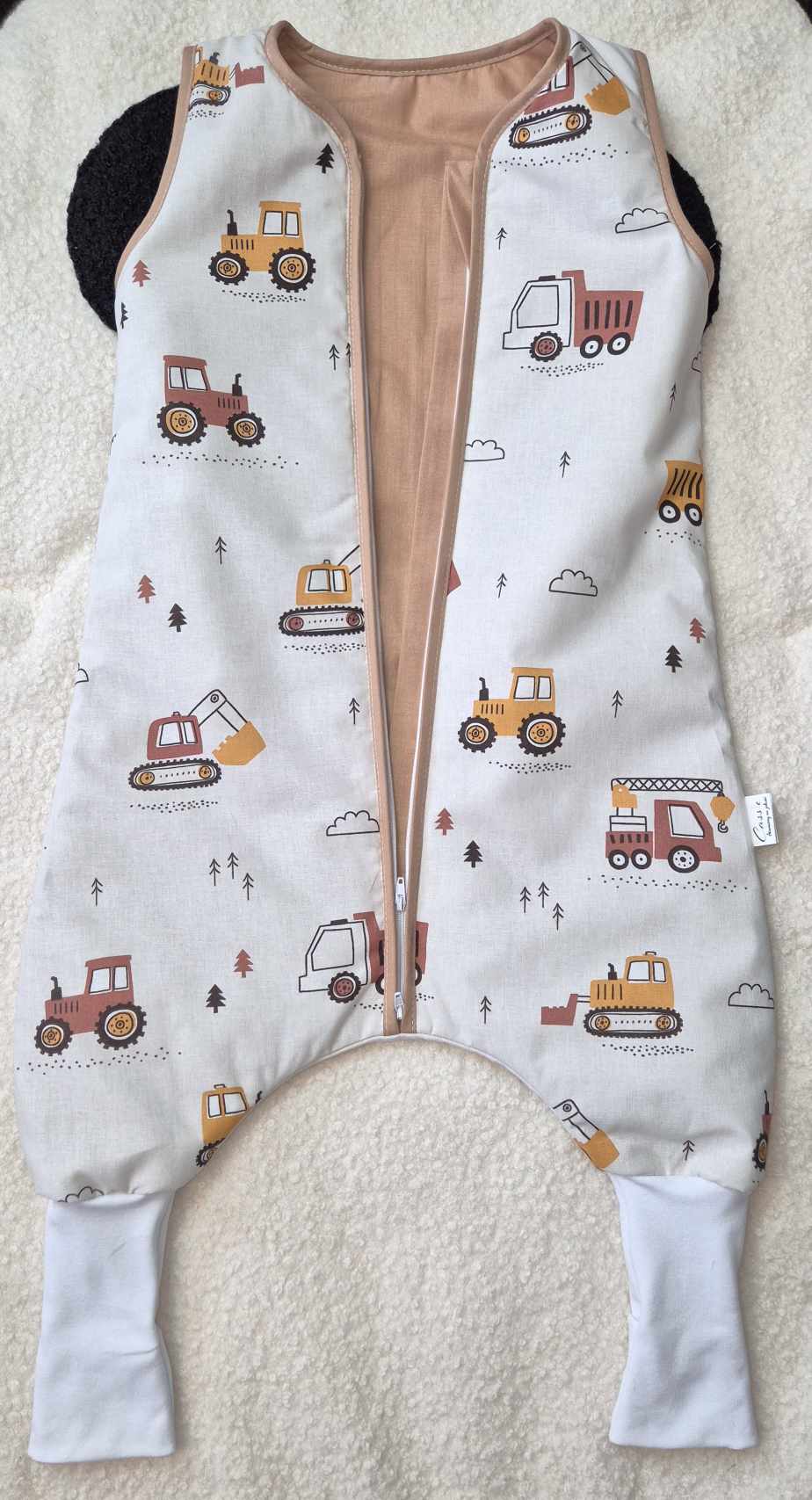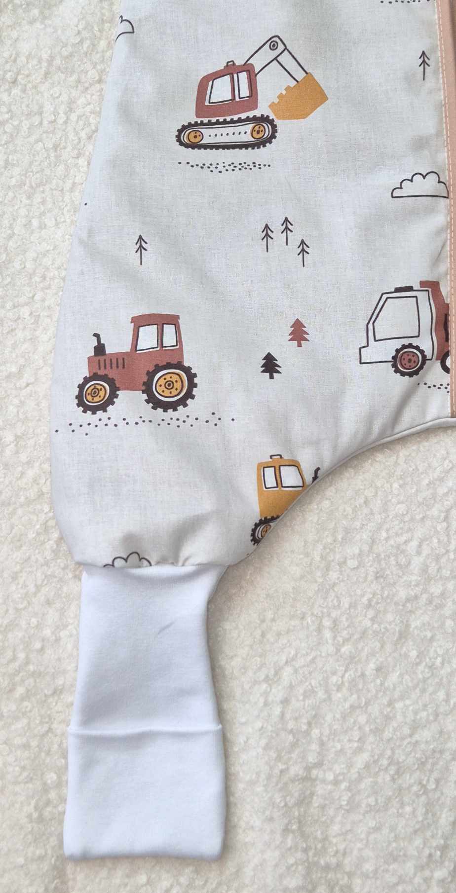 Śpiworek z nogawkami wzór- Traktory Beżowe