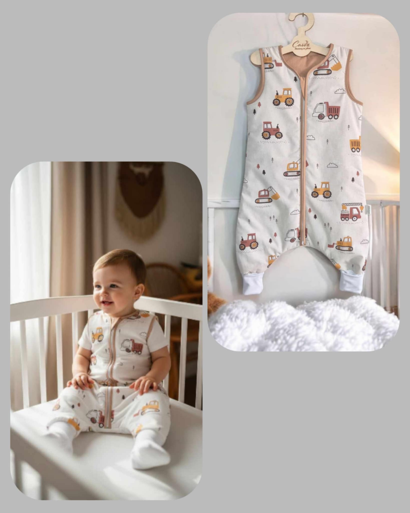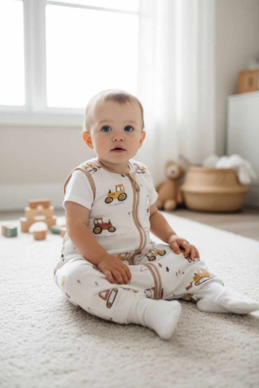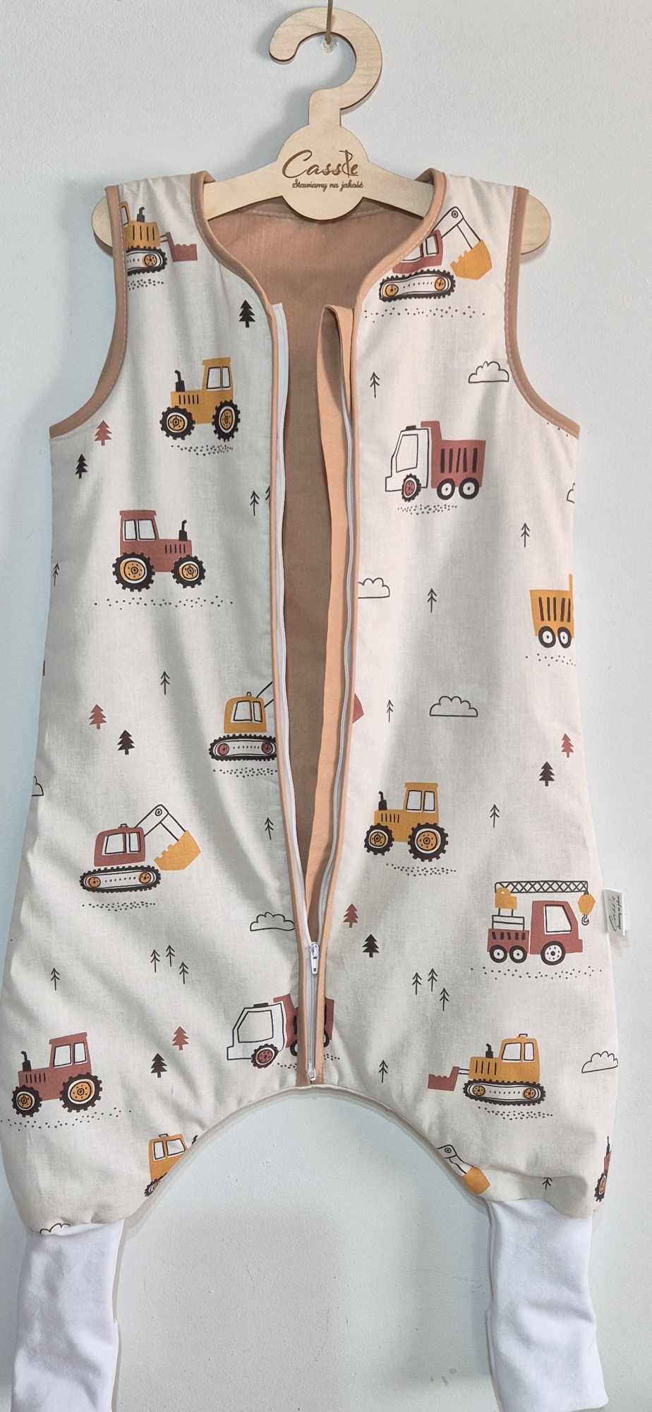 Śpiworek z nogawkami wzór- Traktory Beżowe