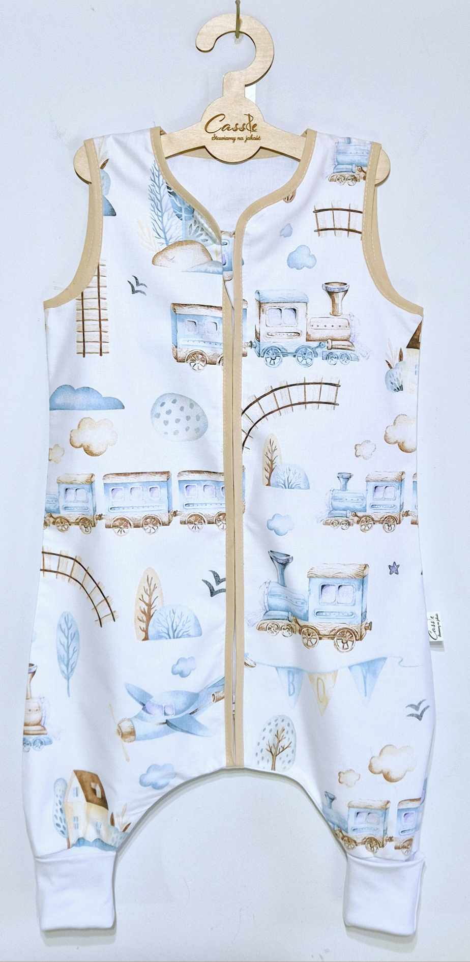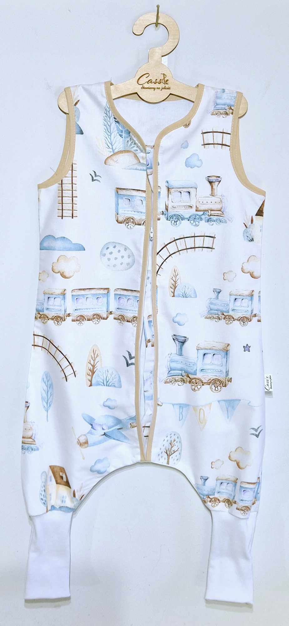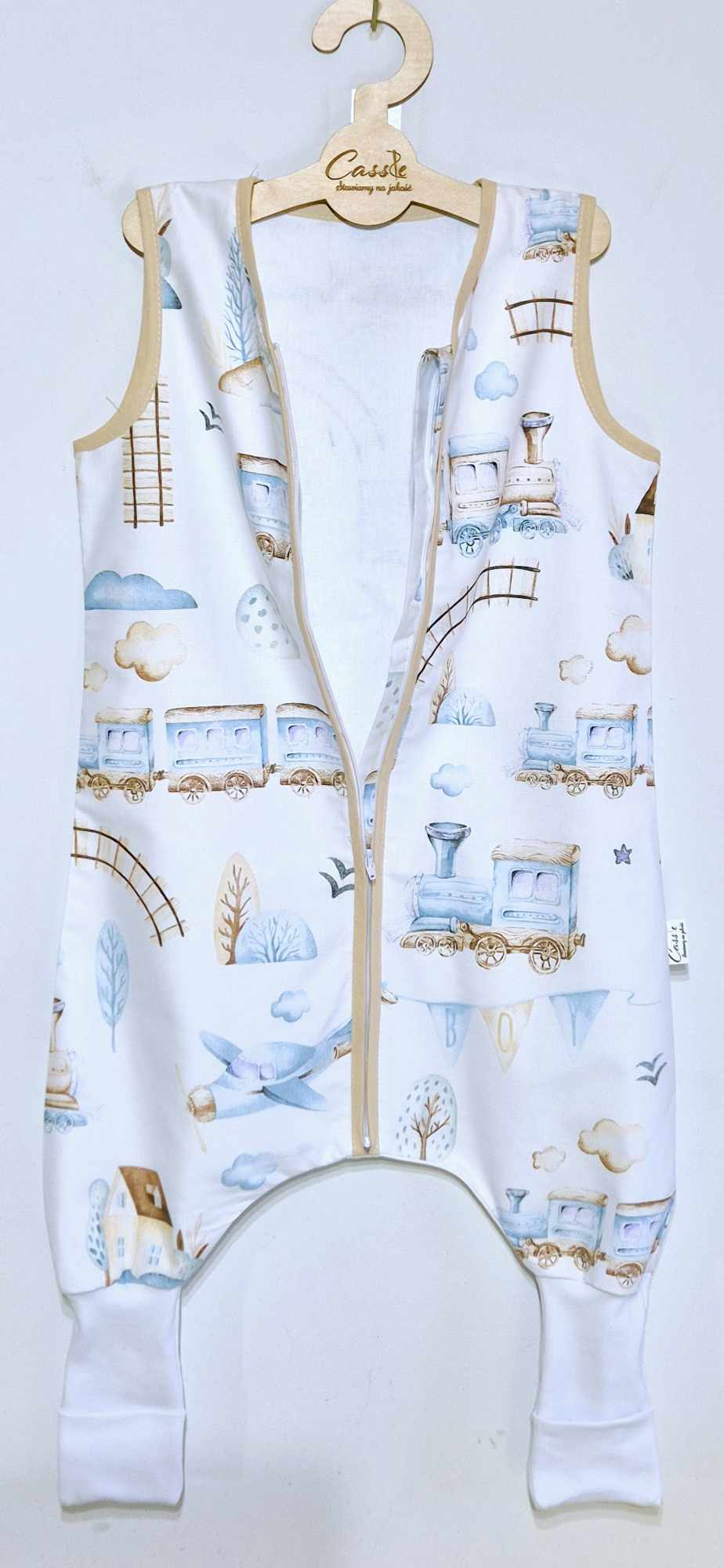 Śpiworek z nogawkami wzór- Lokomotywa niebieska