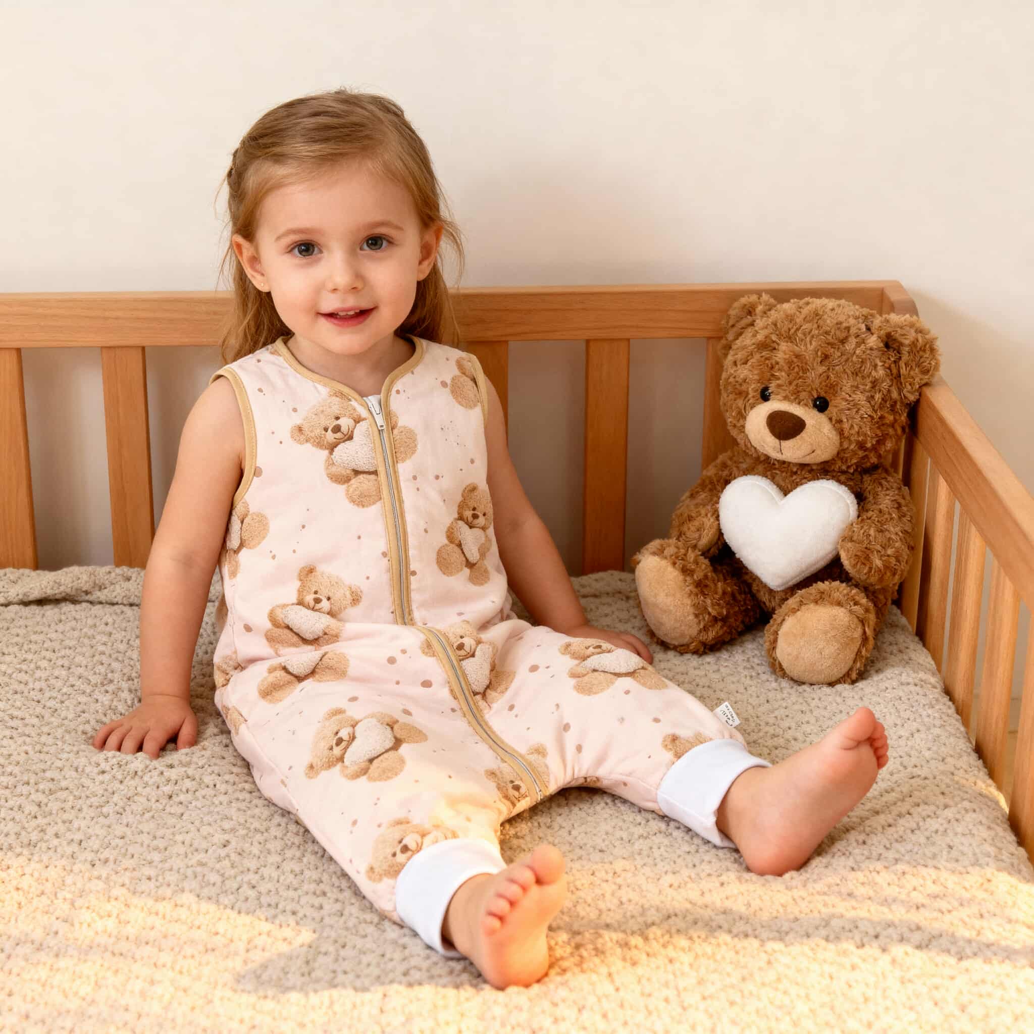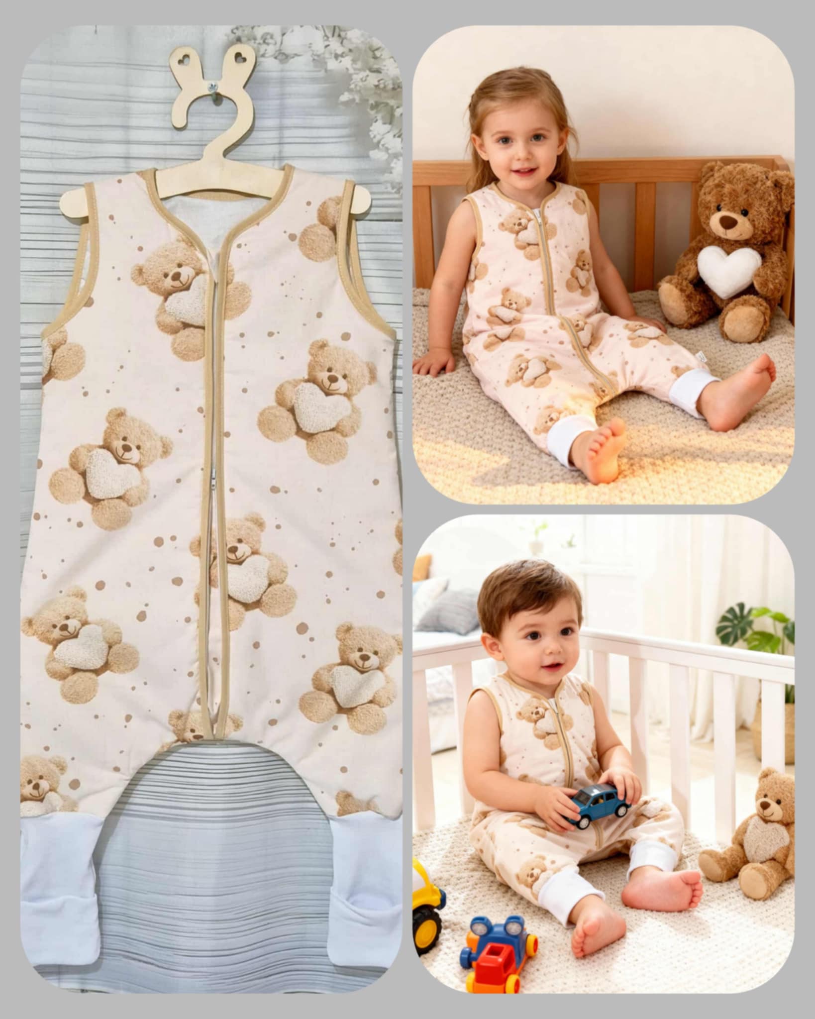 Śpiworek z nogawkami wzór- Miś z serduszkiem